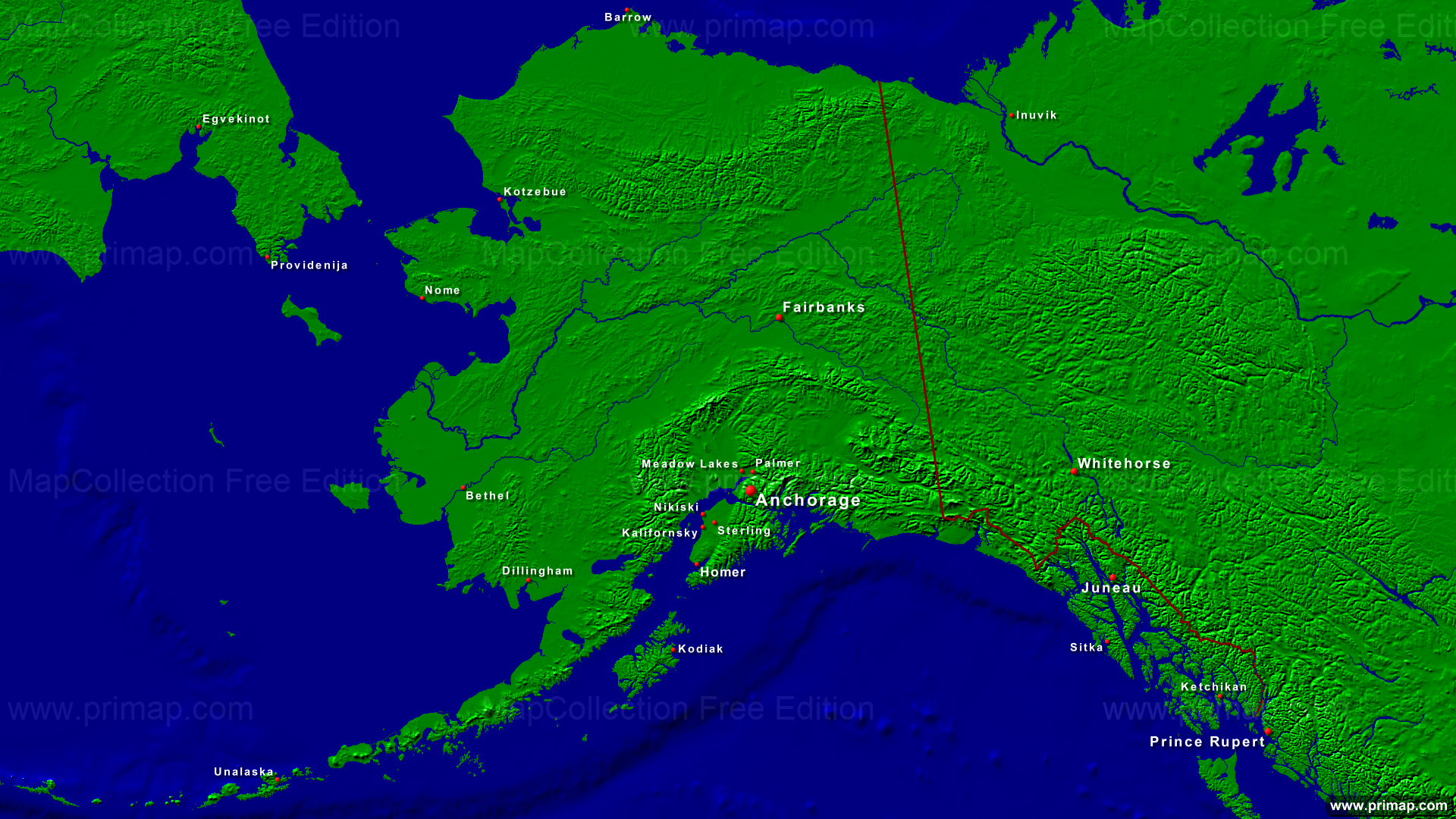 Länderkarten - USA-Alaska - Städte + Grenzen - 1920x1080 (16:9) große Schrift