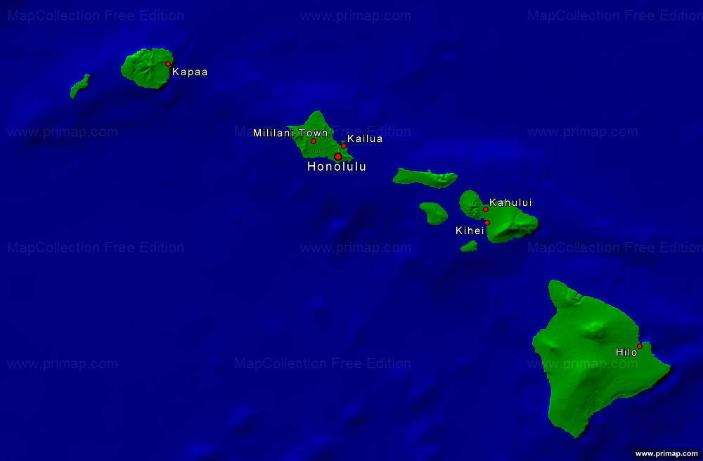 Länderkarten - USA-Hawaii - Städte + Grenzen - 1000x656 kleine Schrift