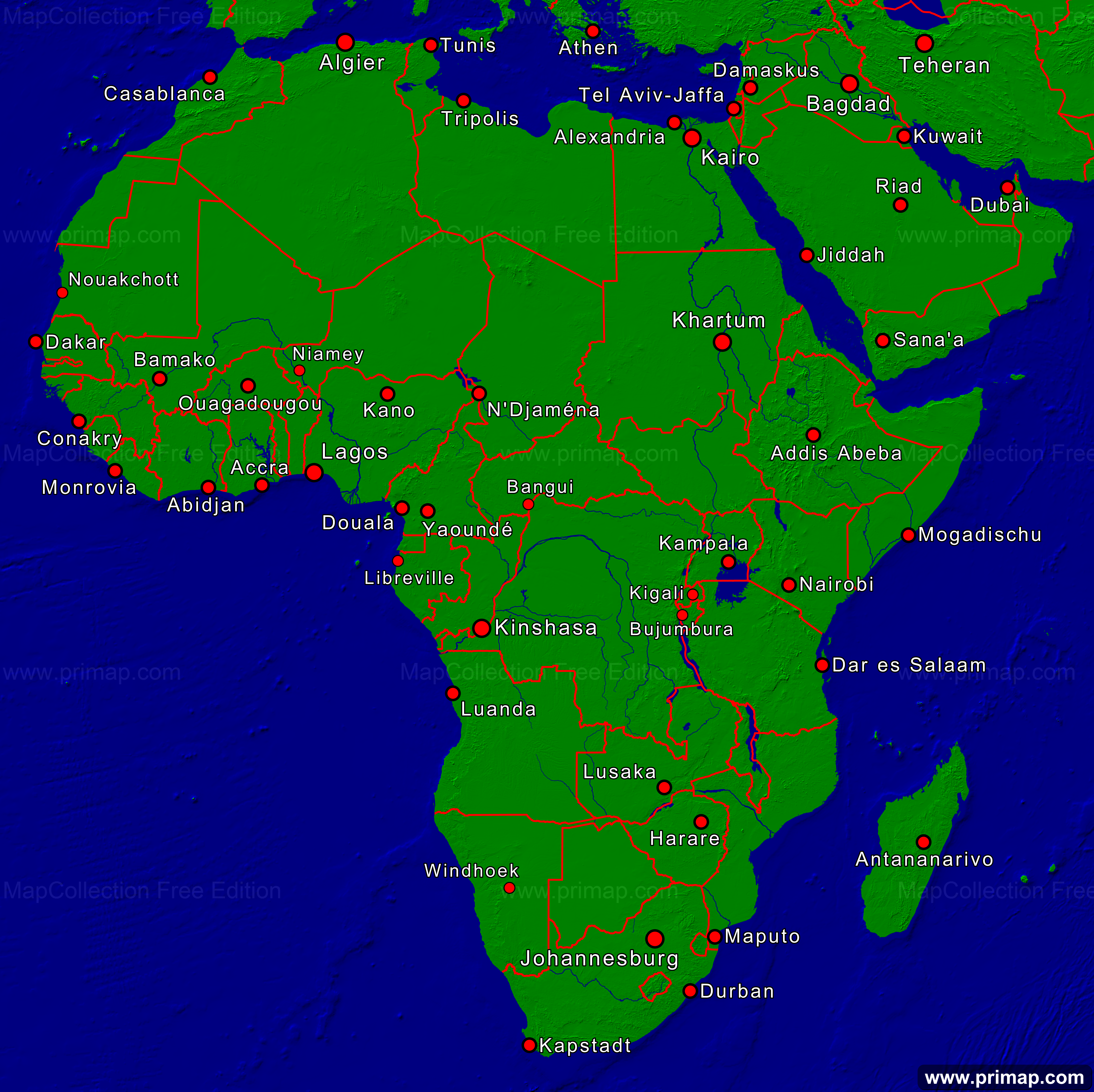 Kontinentalkarten - Afrika - Städte + Grenzen - 4000x3991 kleine Schrift