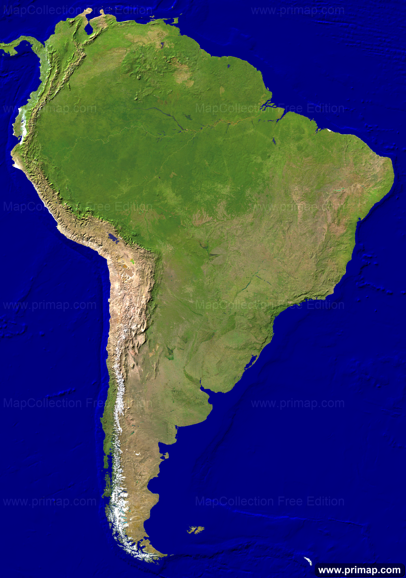Kontinentalkarten - Amerika-Süd - Satellit - 1406x2000