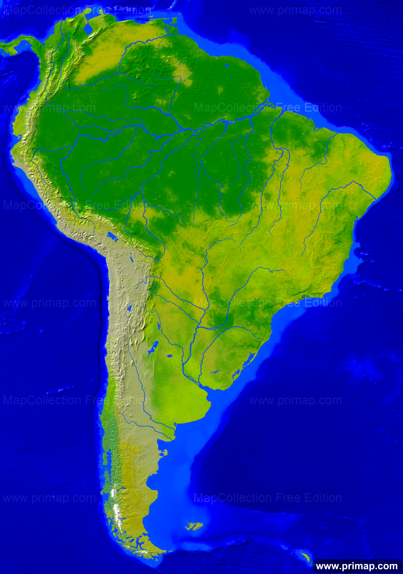 Kontinentalkarten - Amerika-Süd - Vegetation - 1406x2000