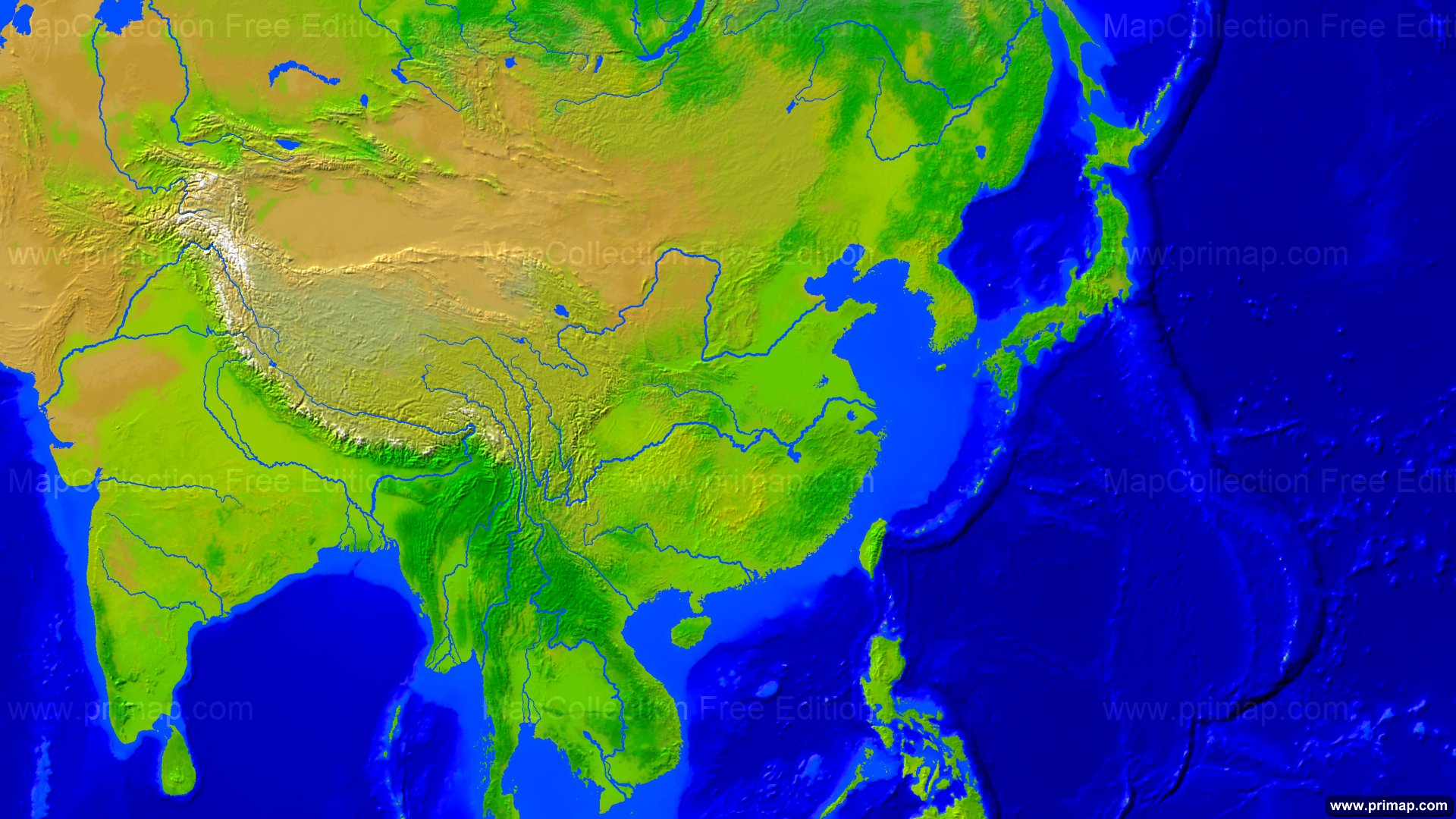Kontinentalkarten - Asien-Ost - Vegetation - 1920x1080 (16:9)
