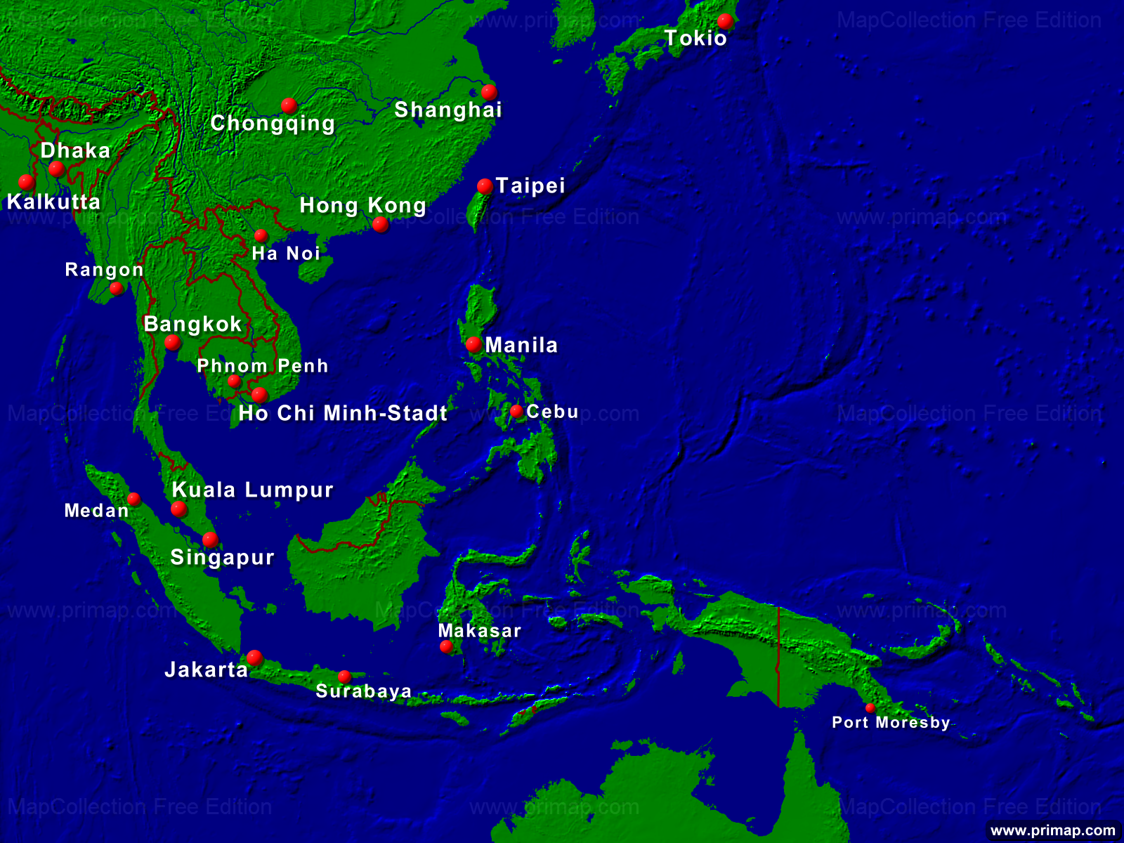 Kontinentalkarten - Asien-Südost - Städte + Grenzen - 1600x1200 (4:3) große Schrift