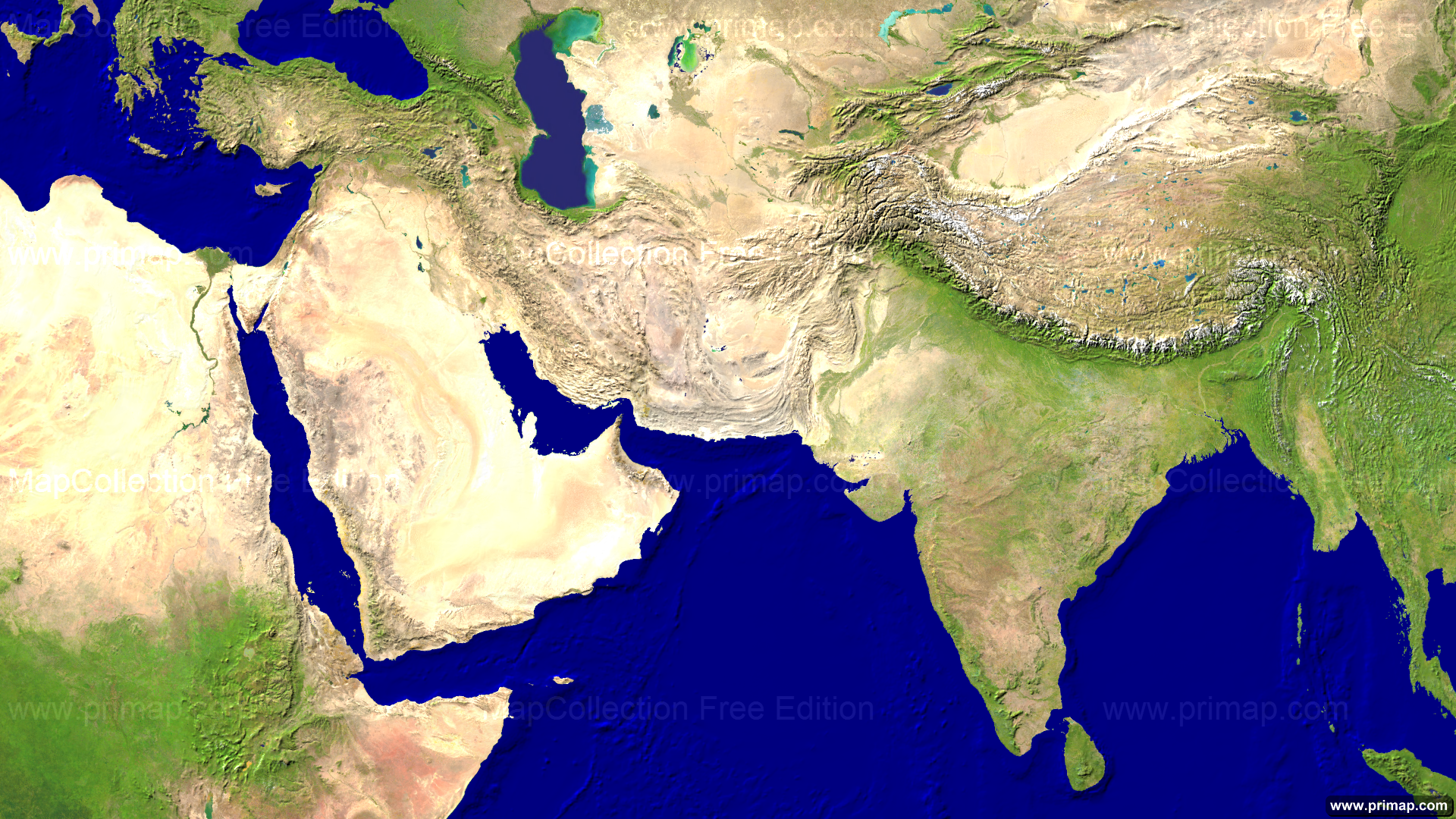 Kontinentalkarten - Asien-Südwest - Satellit - 1920x1080 (16:9)