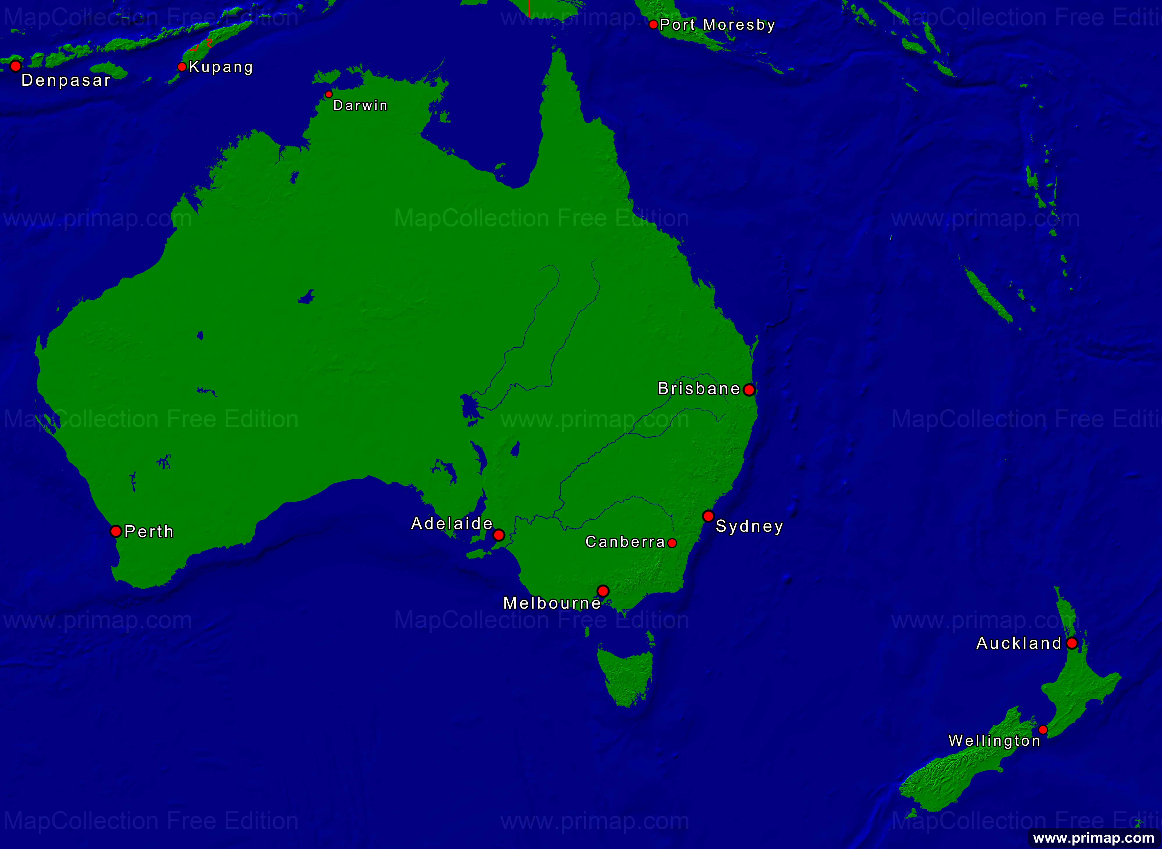 Kontinentalkarten - Australien-Neuseeland - Städte + Grenzen - 4000x2924 kleine Schrift