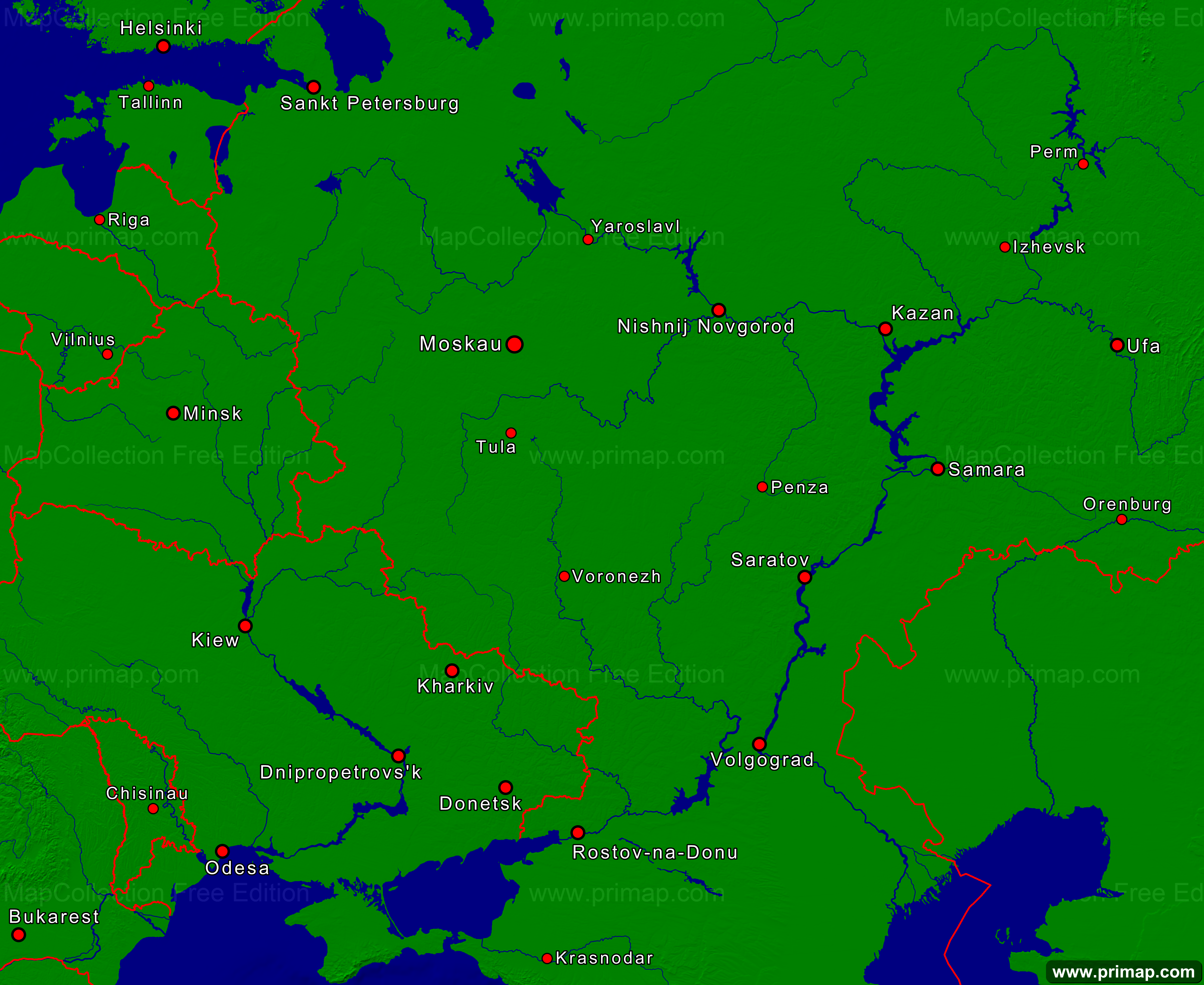 Kontinentalkarten - Europa-Ost - Städte + Grenzen - 4000x3273 kleine Schrift
