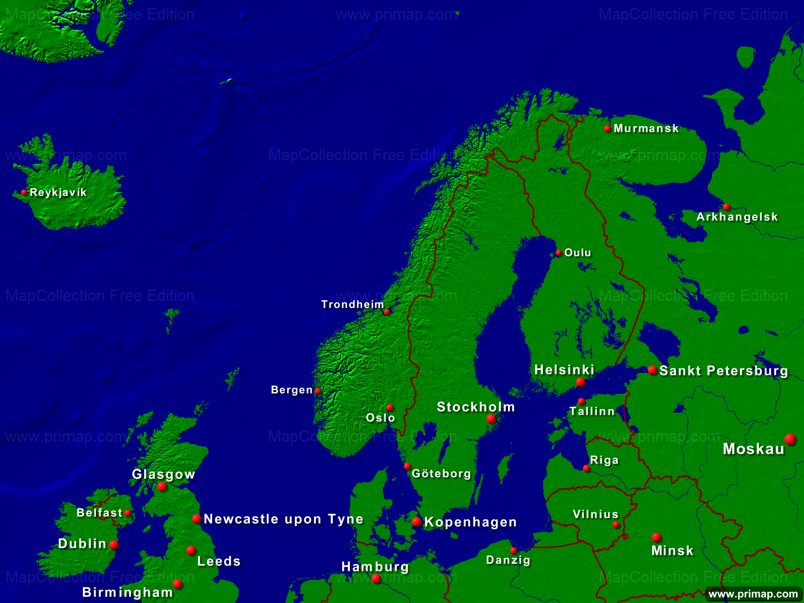 Kontinentalkarten - Europa-Nord - Städte + Grenzen - 1600x1200 (4:3) große Schrift