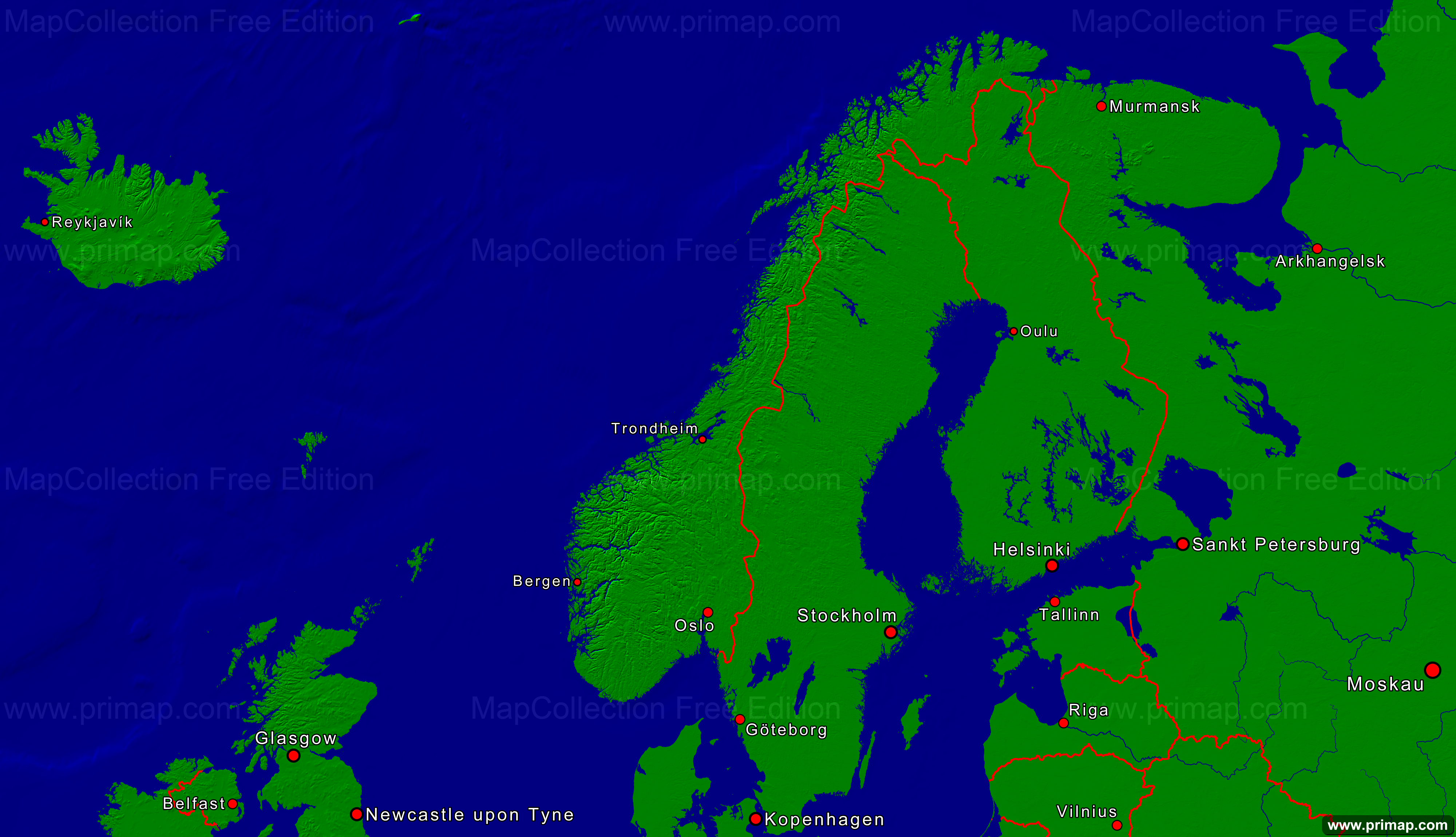 Kontinentalkarten - Europa-Nord - Städte + Grenzen - 4000x2299 kleine Schrift