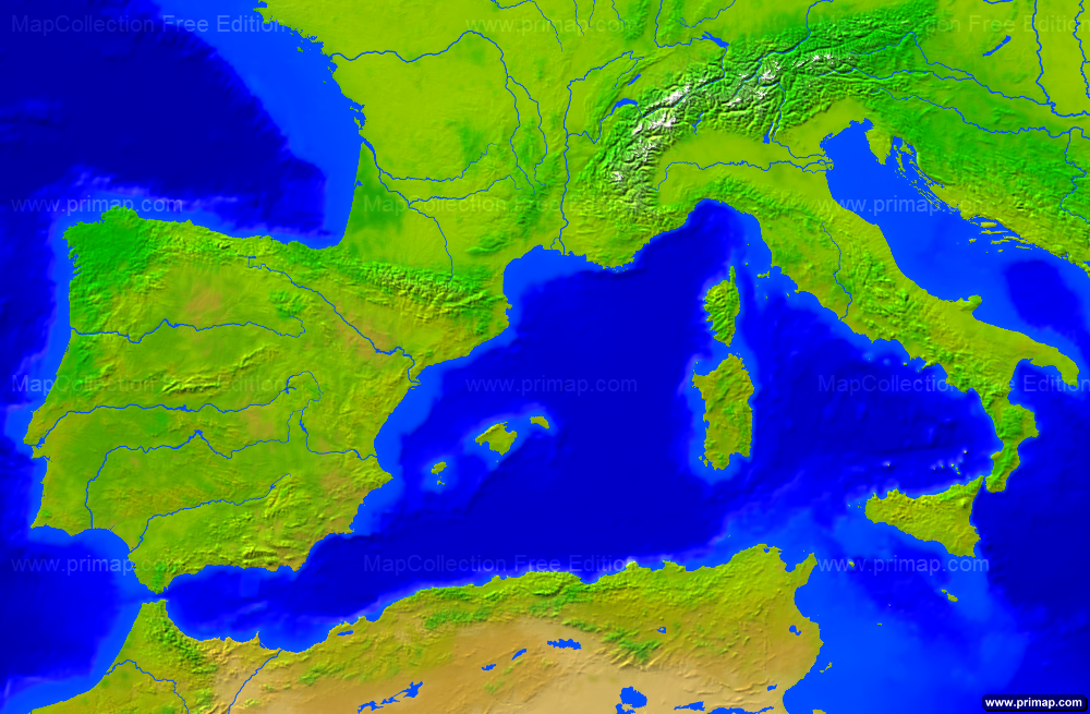 Kontinentalkarten - Europa-Südwest - Vegetation - 1000x655