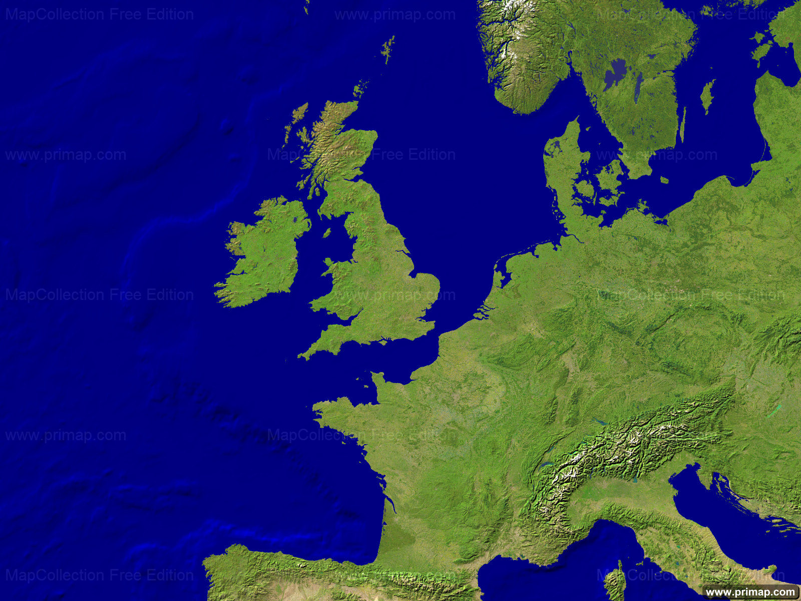 Kontinentalkarten - Europa-West - Satellit - 1600x1200 (4:3)