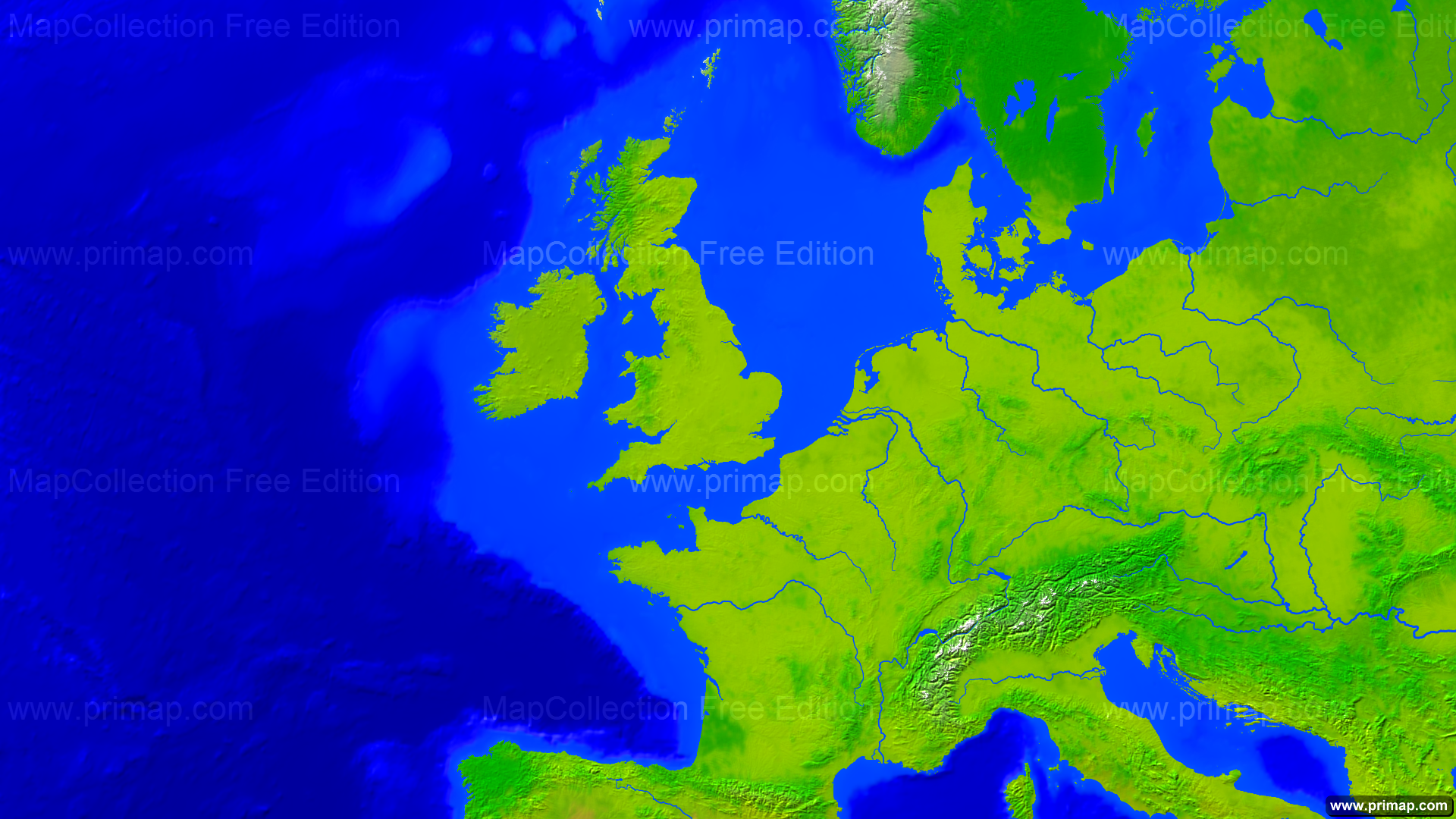Kontinentalkarten - Europa-West - Vegetation - 1920x1080 (16:9)