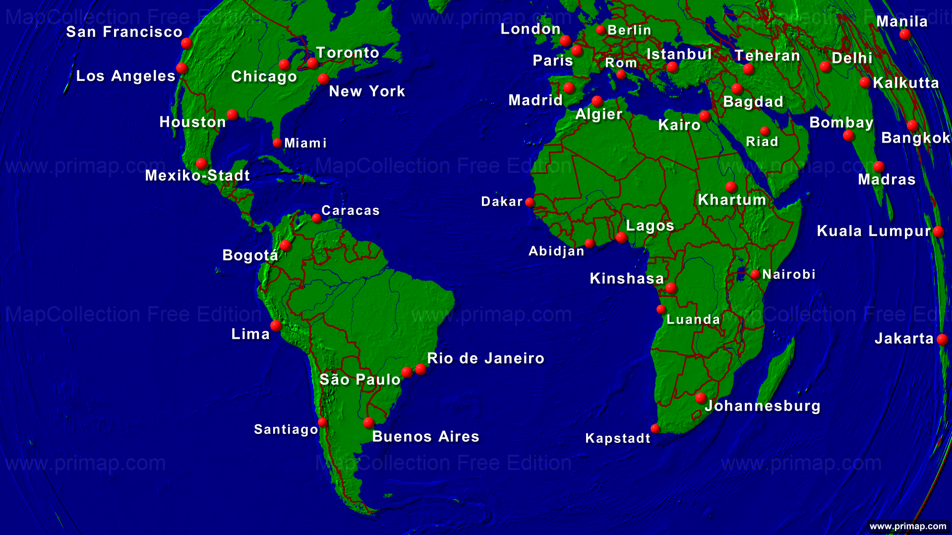 Seekarten - Atlantischer Ozean - Städte + Grenzen - 1920x1080 (16:9) große Schrift