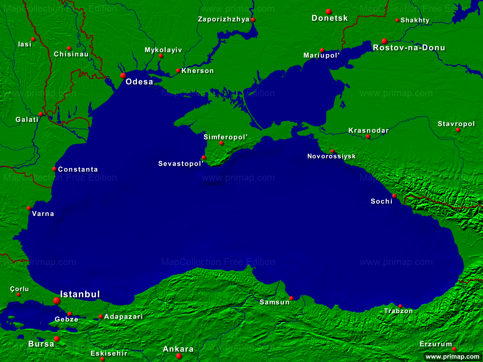 Seekarten - Schwarzes Meer - Städte + Grenzen - 1600x1200 (4:3) große Schrift