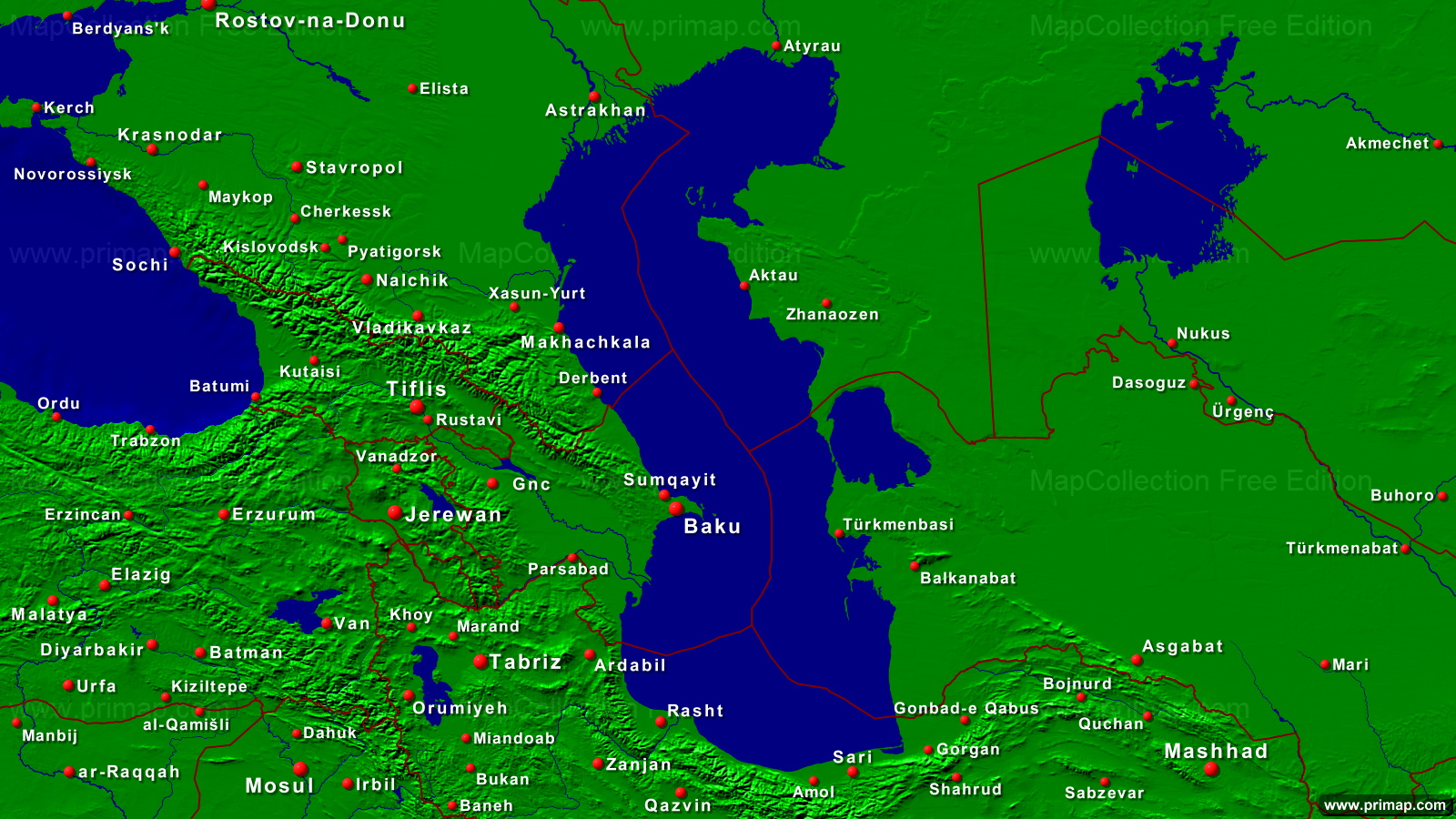Seekarten - Kaspisches Meer - Städte + Grenzen - 1600x900 (16:9) große Schrift