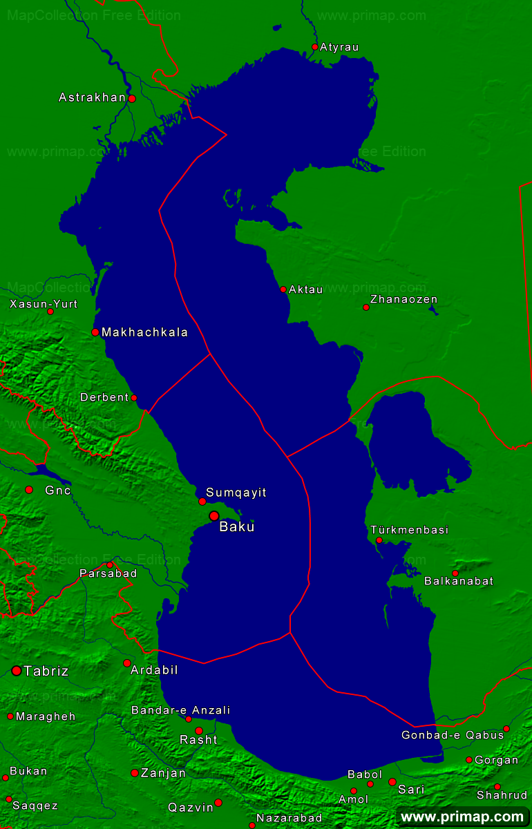 Seekarten - Kaspisches Meer - Städte + Grenzen - 770x1200 kleine Schrift