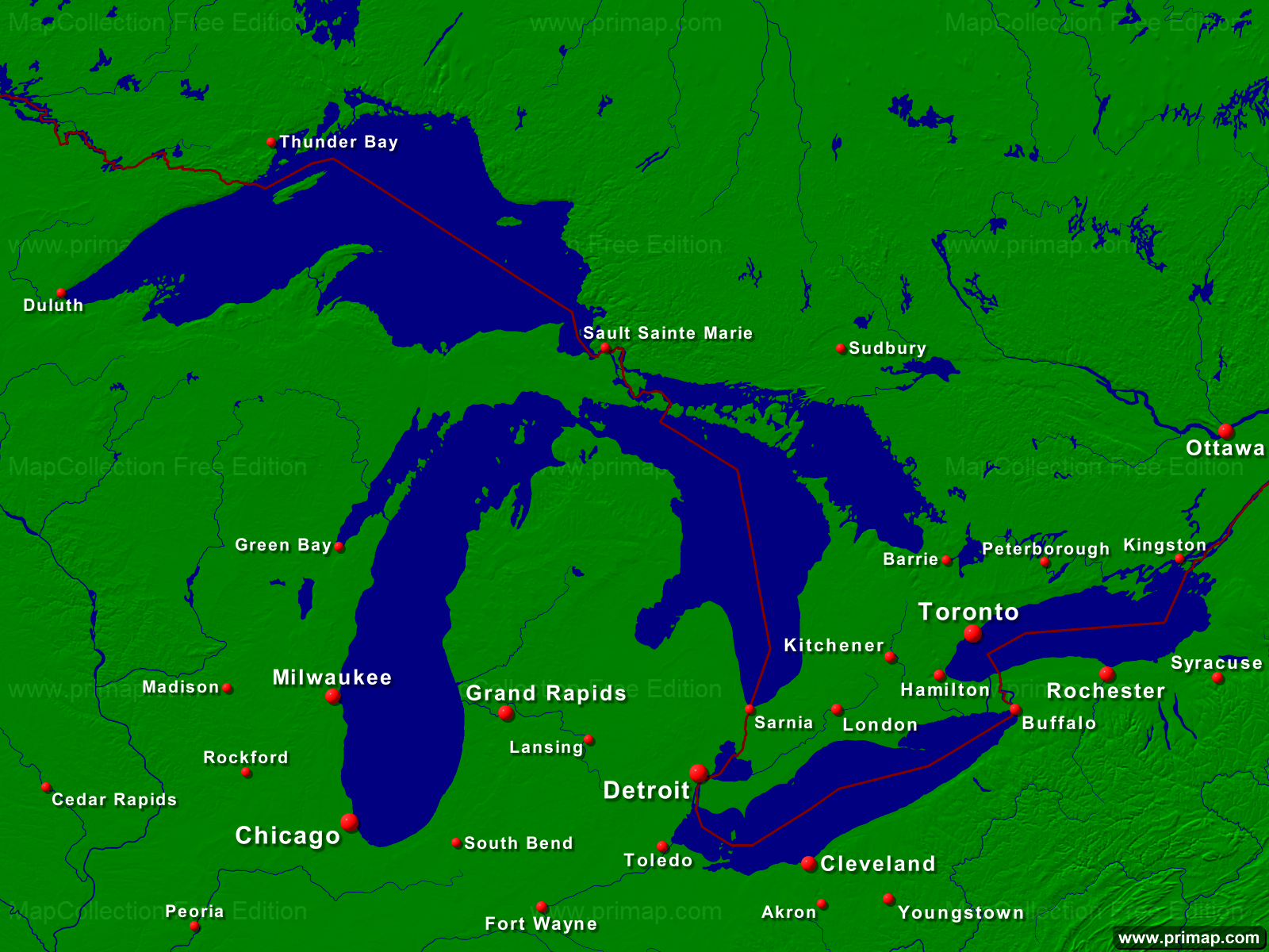 Seekarten - Große Seen - Städte + Grenzen - 1600x1200 (4:3) große Schrift