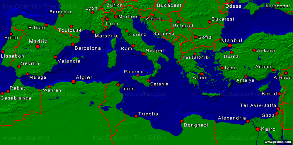 Seekarten - Mittelmeer - Städte + Grenzen - 1000x494 kleine Schrift