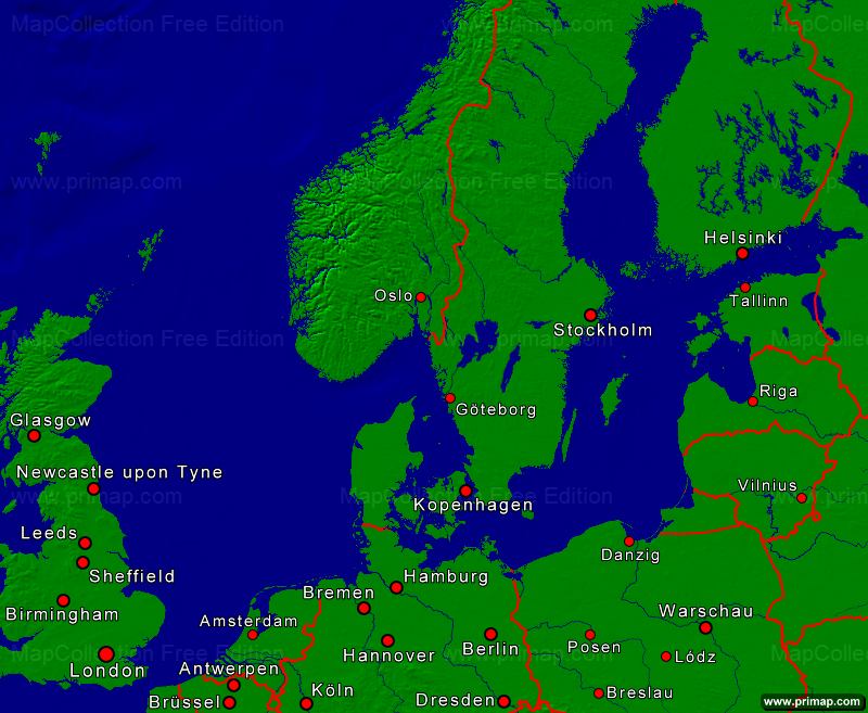 Seekarten - Nord-Ostsee - Städte + Grenzen - 800x657 kleine Schrift