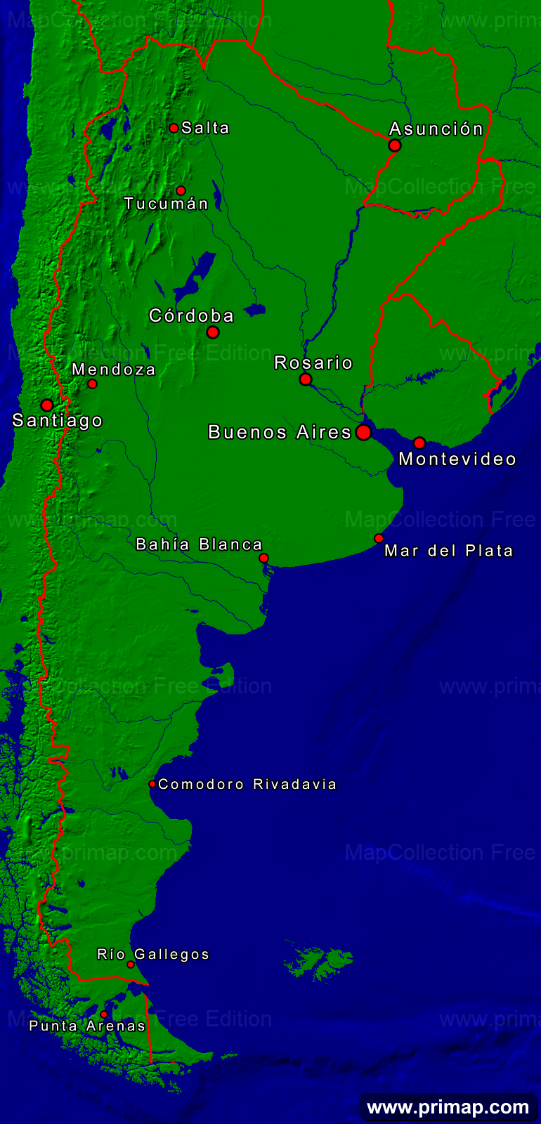 Länderkarten - Argentinien - Städte + Grenzen - 770x1600 kleine Schrift