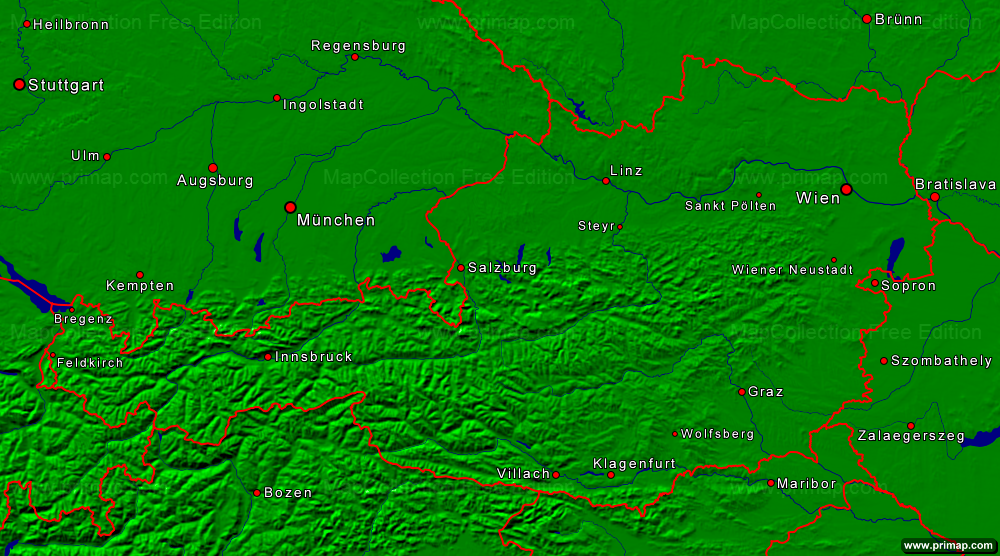 Länderkarten - Österreich - Städte + Grenzen - 1000x556 kleine Schrift