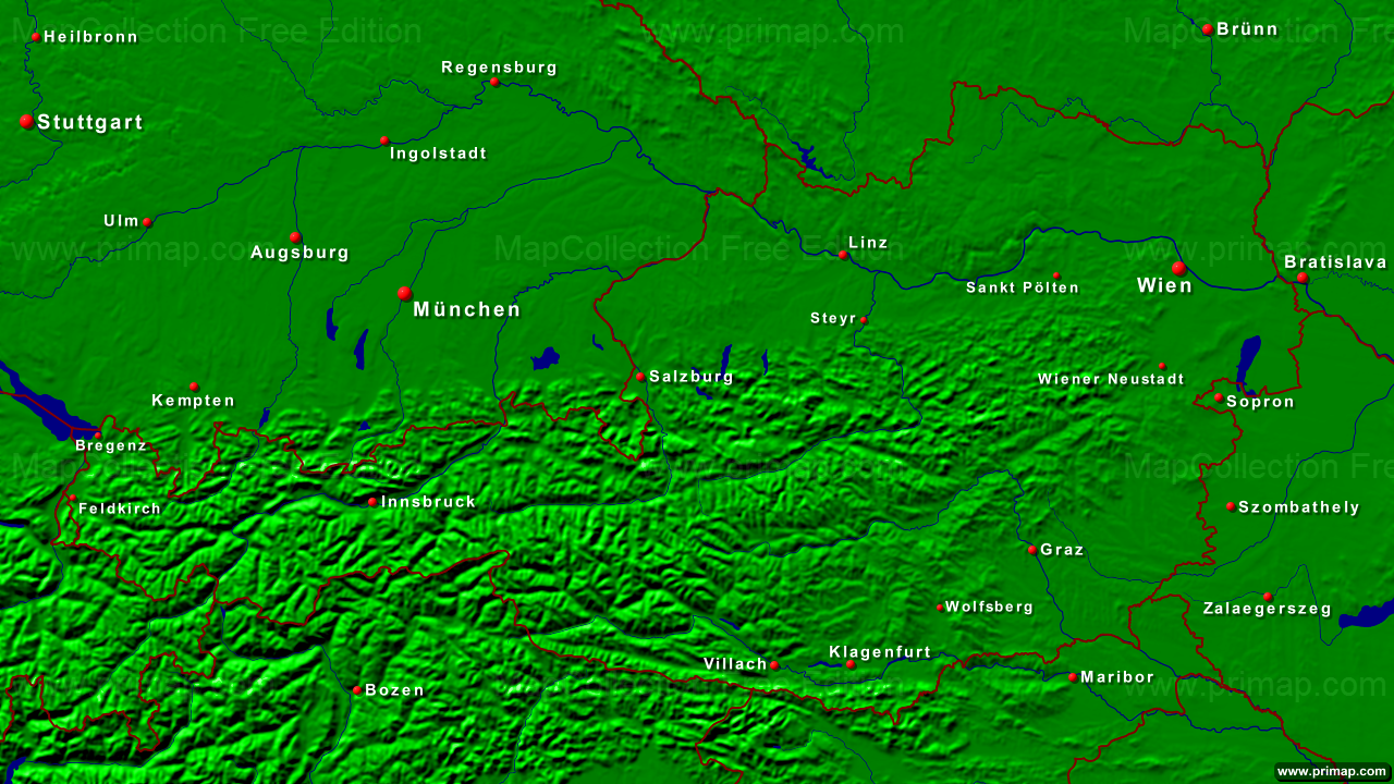 Länderkarten - Österreich - Städte + Grenzen - 1280x720 (16:9) große Schrift
