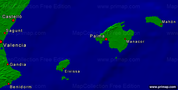 Länderkarten - Balearen - Städte + Grenzen - 600x305 kleine Schrift