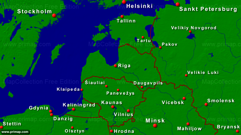 Länderkarten - Baltische Staaten - Städte + Grenzen - 800x450 (16:9) große Schrift