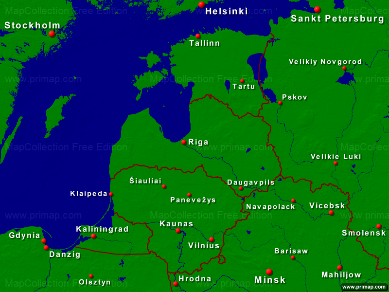 Länderkarten - Baltische Staaten - Städte + Grenzen - 800x600 (4:3) große Schrift