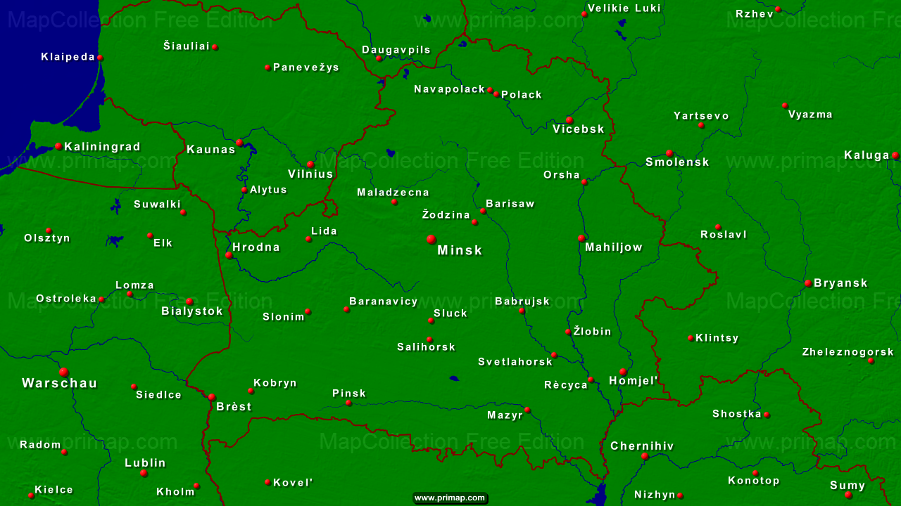 Länderkarten - Weißrussland - Städte + Grenzen - 1280x720 (16:9) große Schrift