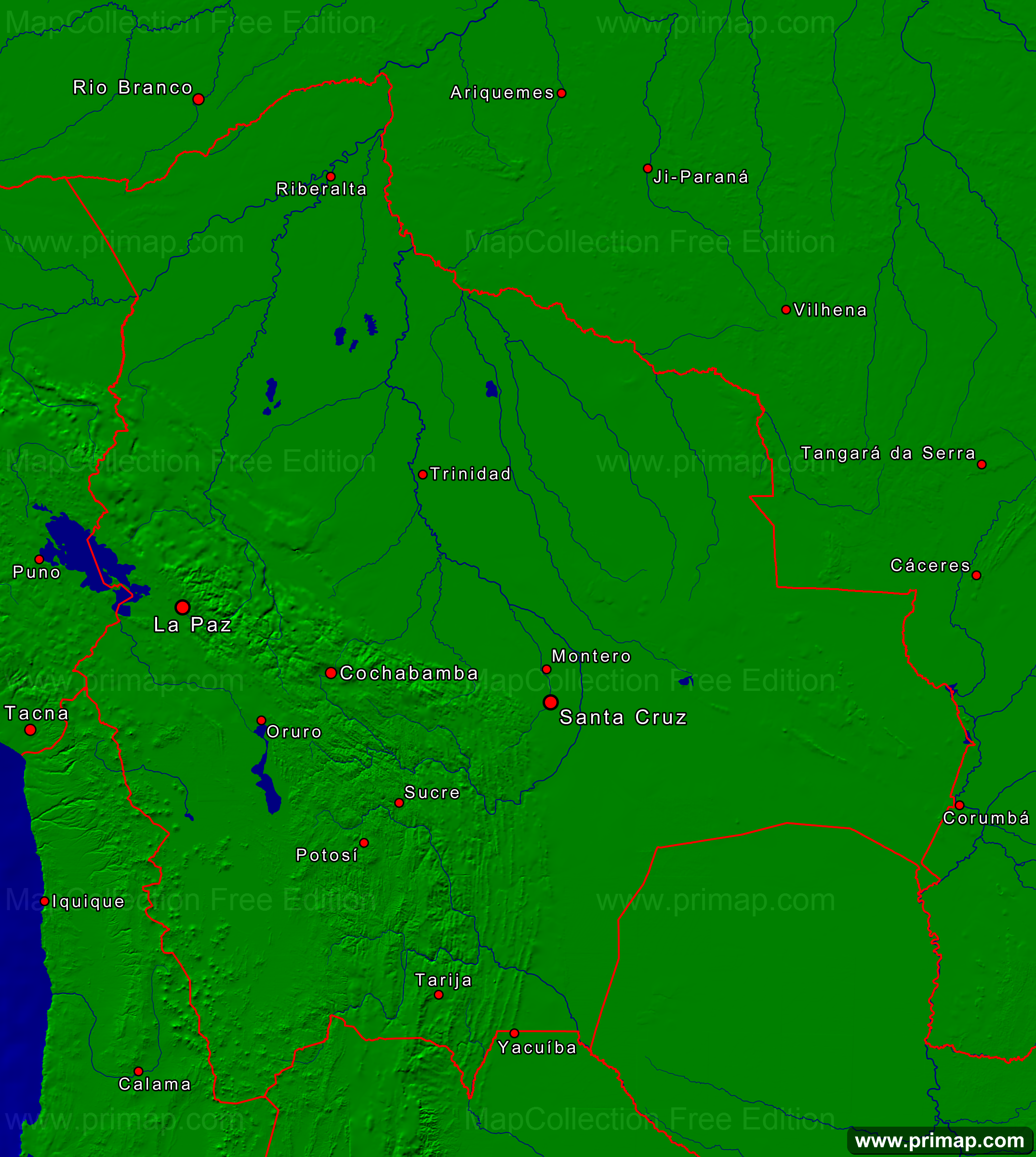 Länderkarten - Bolivien - Städte + Grenzen - 2150x2400 kleine Schrift