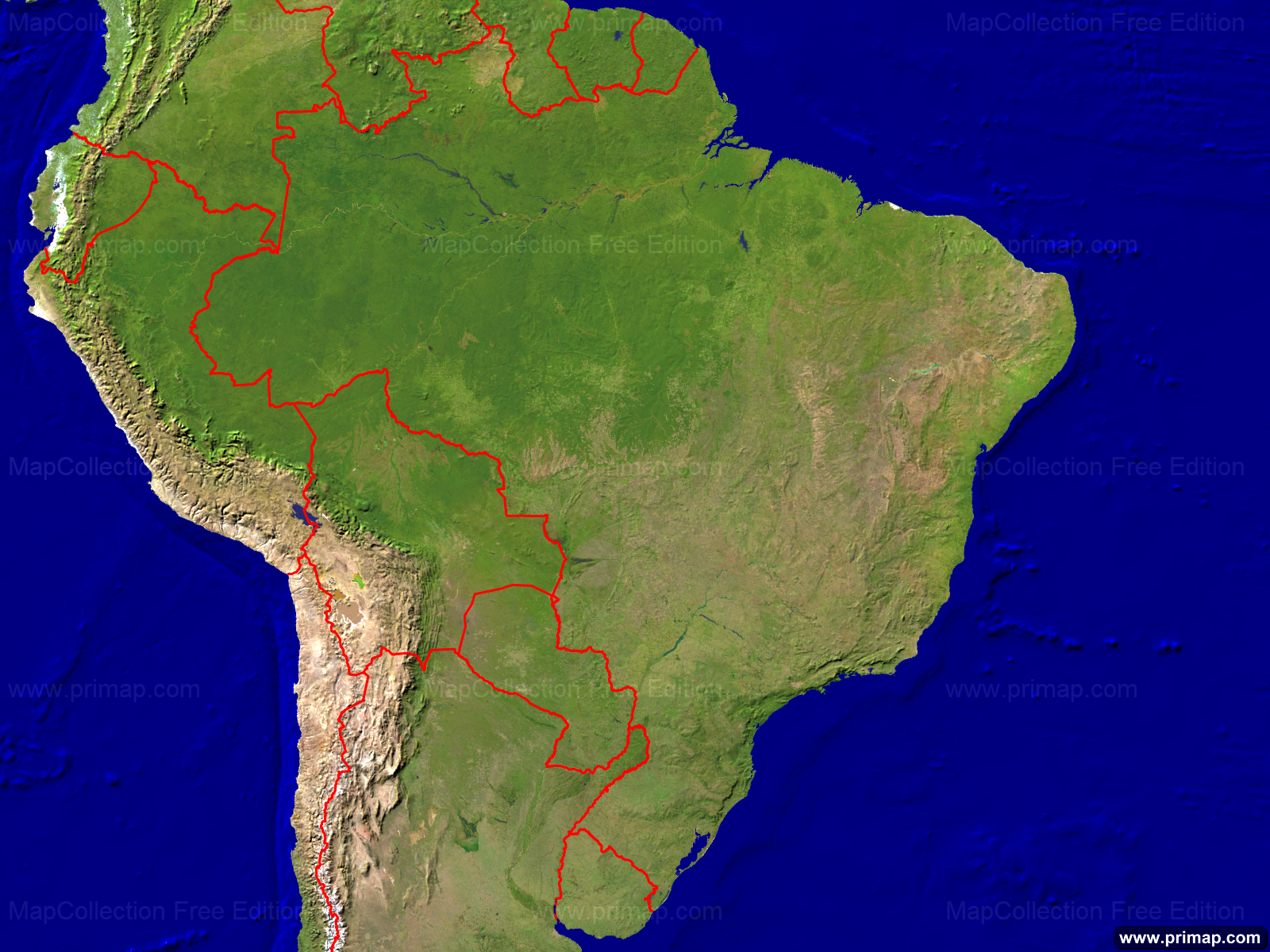 Länderkarten - Brasilien - Satellit - 1600x1200 (4:3)