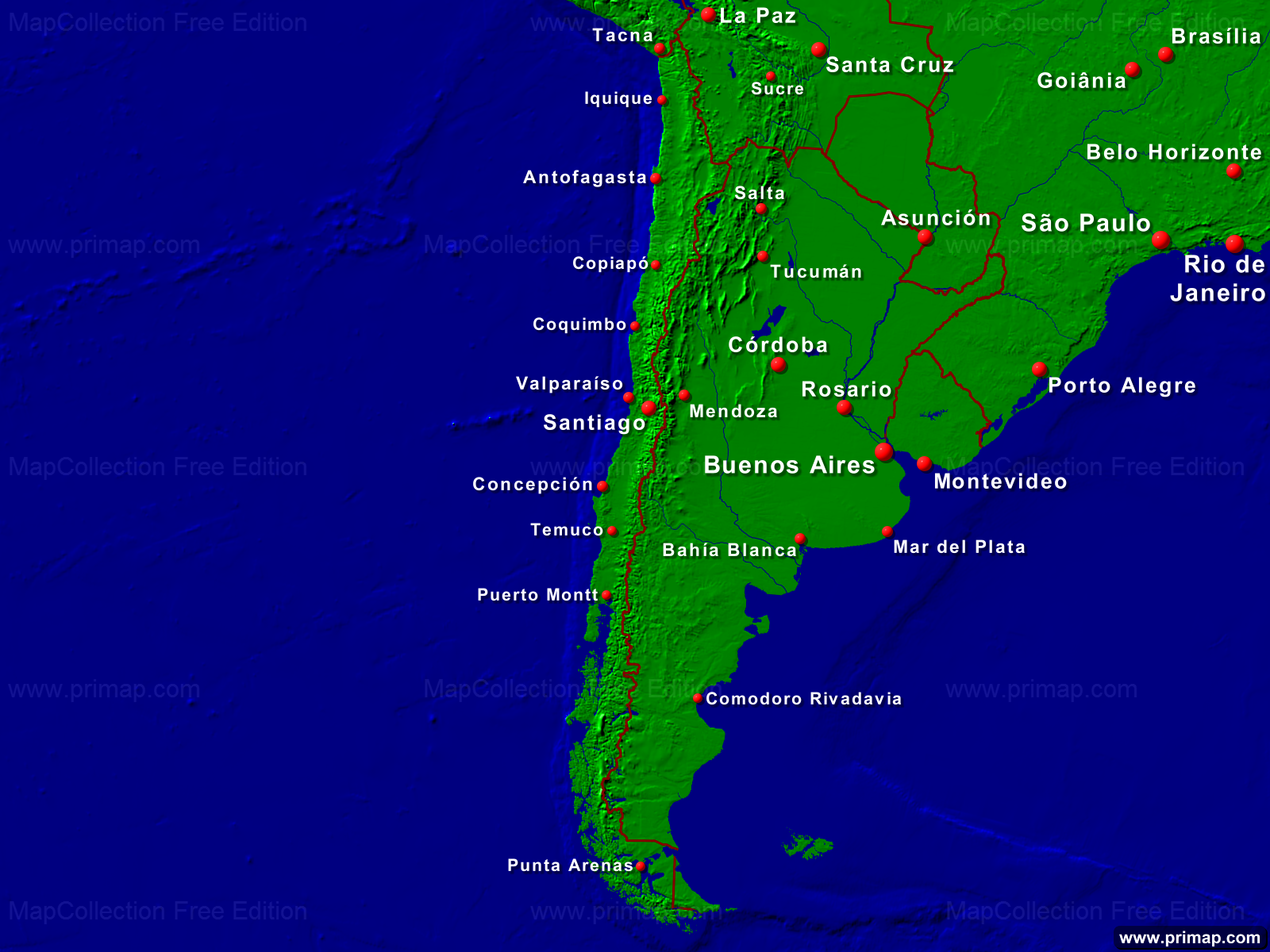 Länderkarten - Chile - Städte + Grenzen - 1600x1200 (4:3) große Schrift