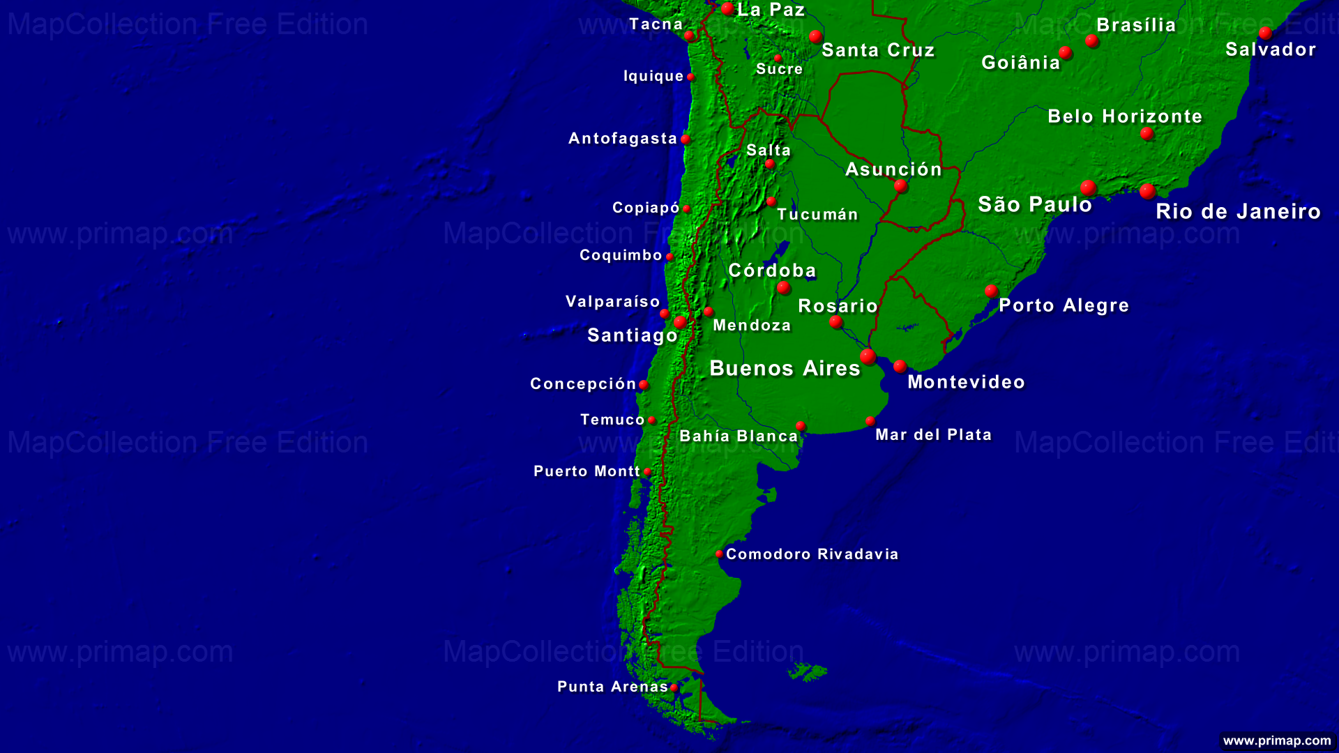 Länderkarten - Chile - Städte + Grenzen - 1920x1080 (16:9) große Schrift