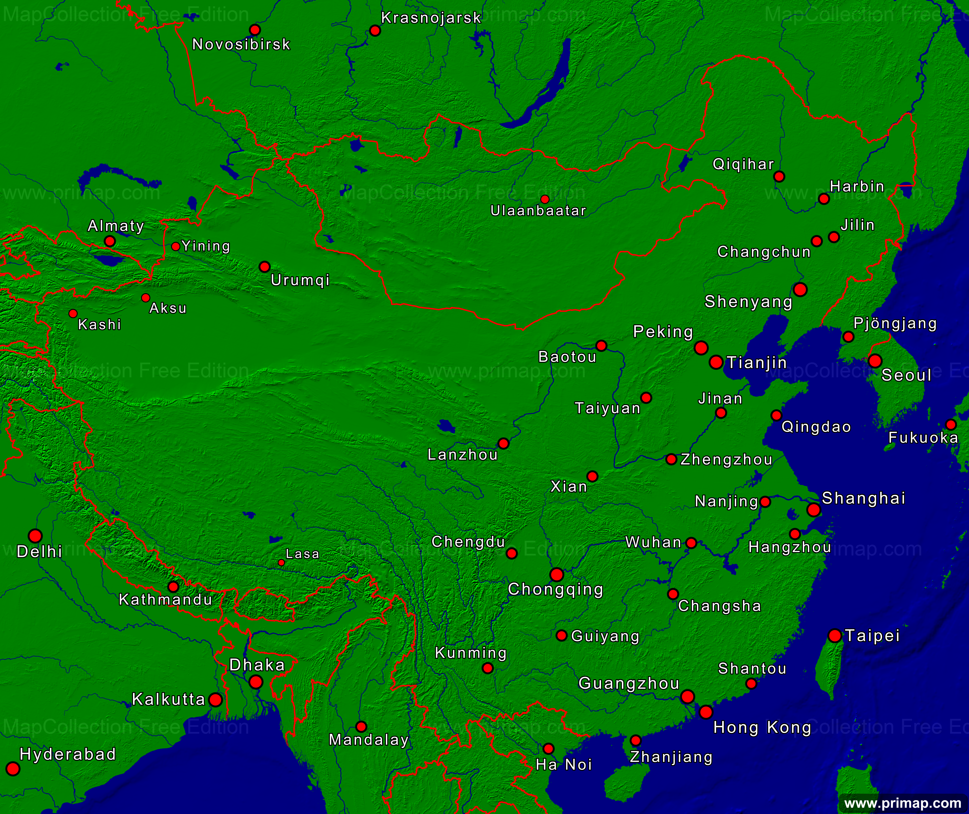 Länderkarten - China - Städte + Grenzen - 4000x3363 kleine Schrift