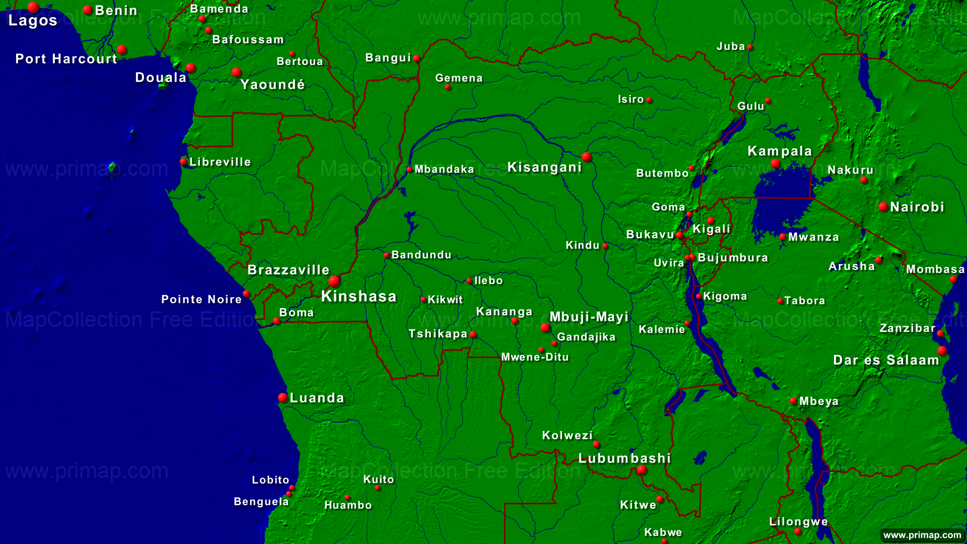 Länderkarten - Kongo - Städte + Grenzen - 1920x1080 (16:9) große Schrift