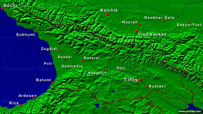 Länderkarten - Georgien - Städte + Grenzen - 800x450 (16:9) große Schrift