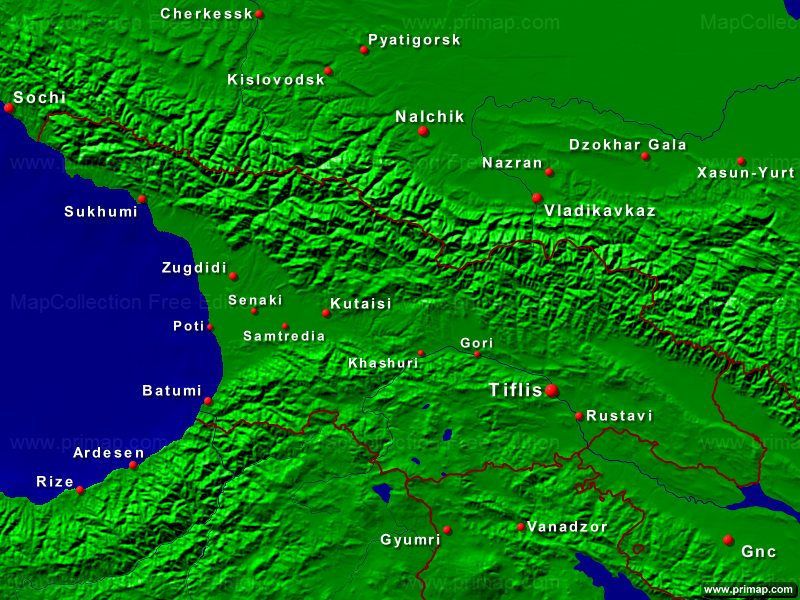 Länderkarten - Georgien - Städte + Grenzen - 800x600 (4:3) große Schrift