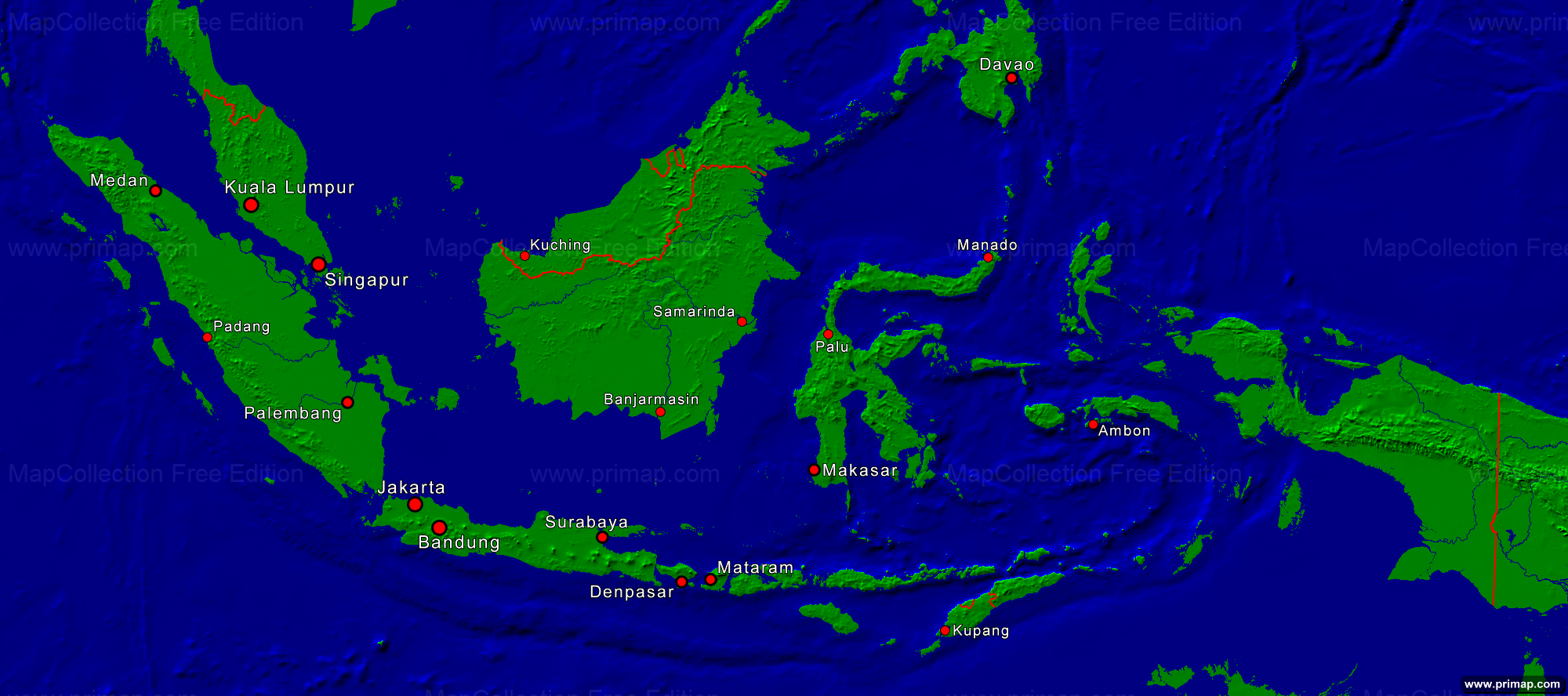 Länderkarten - Indonesien - Städte + Grenzen - 2000x888 kleine Schrift