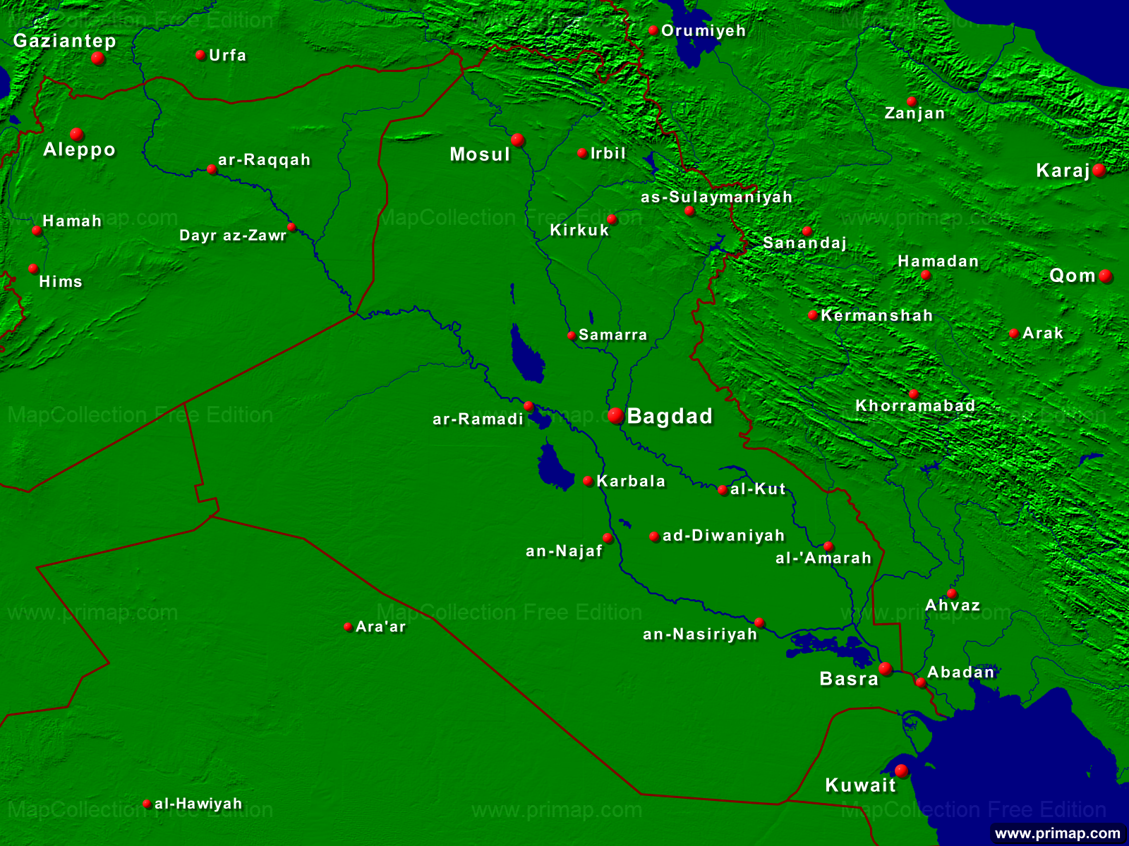 Länderkarten - Irak - Städte + Grenzen - 1600x1200 (4:3) große Schrift