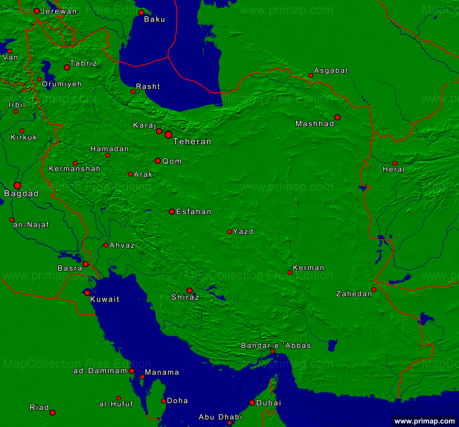 Länderkarten - Iran - Städte + Grenzen - 1600x1487 kleine Schrift