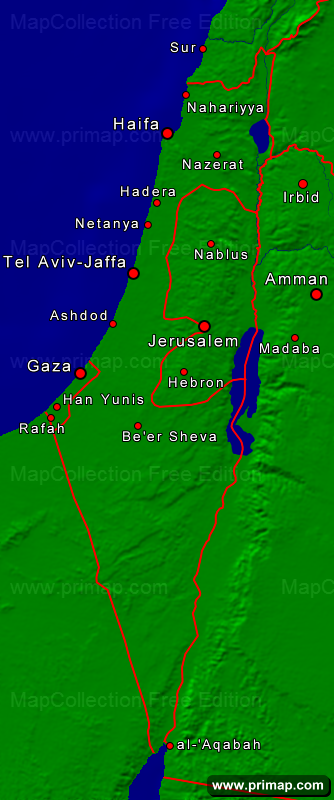 Länderkarten - Israel - Städte + Grenzen - 334x800 kleine Schrift