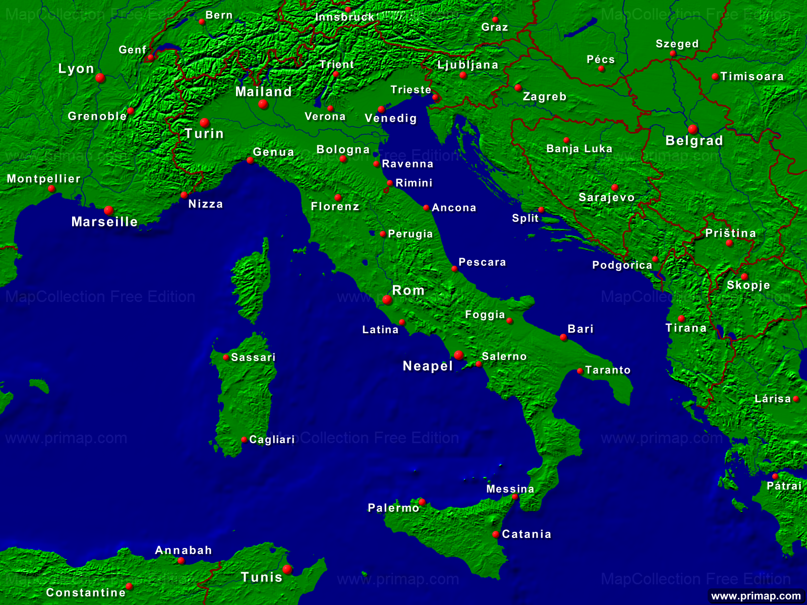 Länderkarten - Italien - Städte + Grenzen - 1600x1200 (4:3) große Schrift