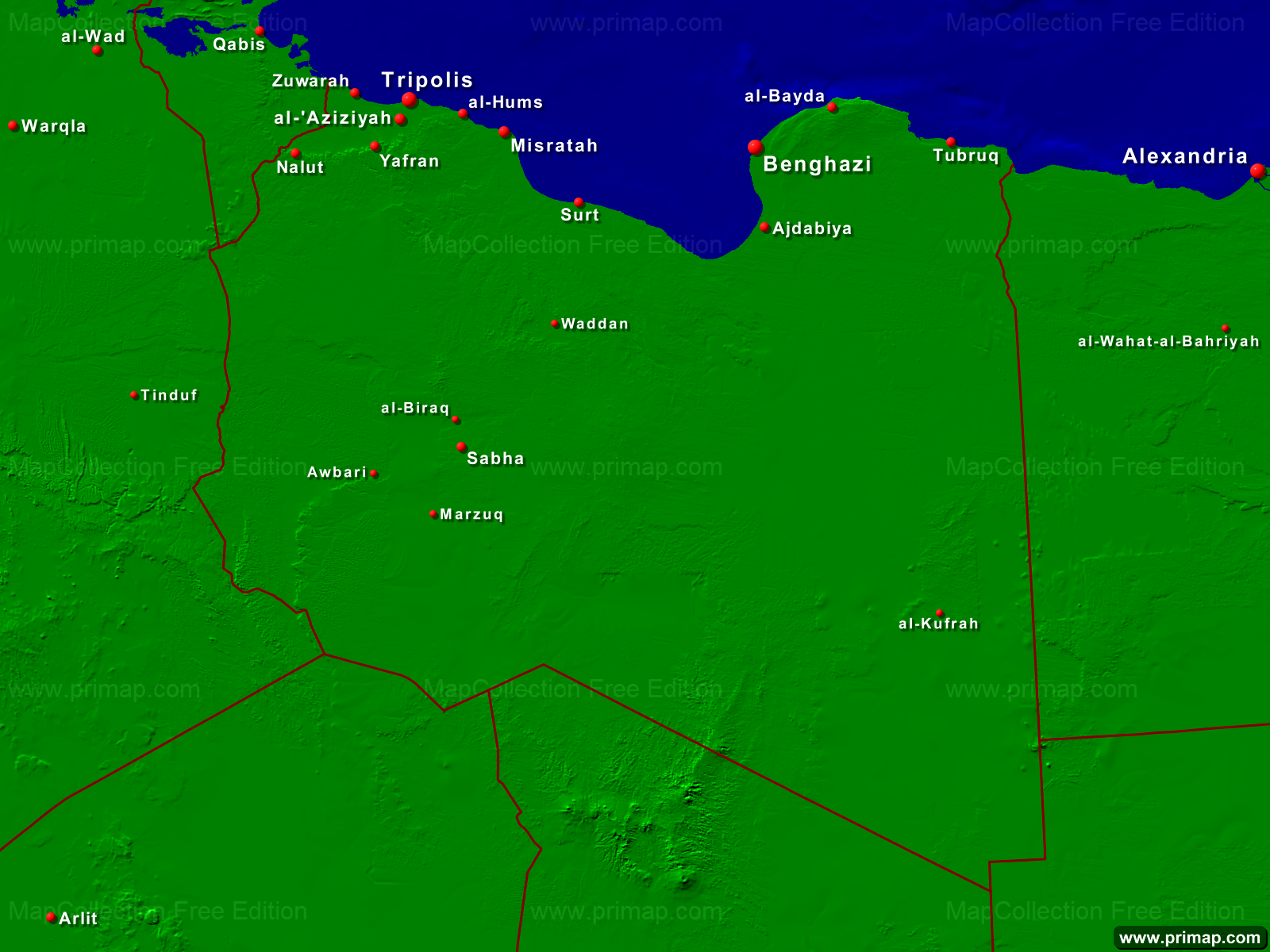 Länderkarten - Libyen - Städte + Grenzen - 1600x1200 (4:3) große Schrift
