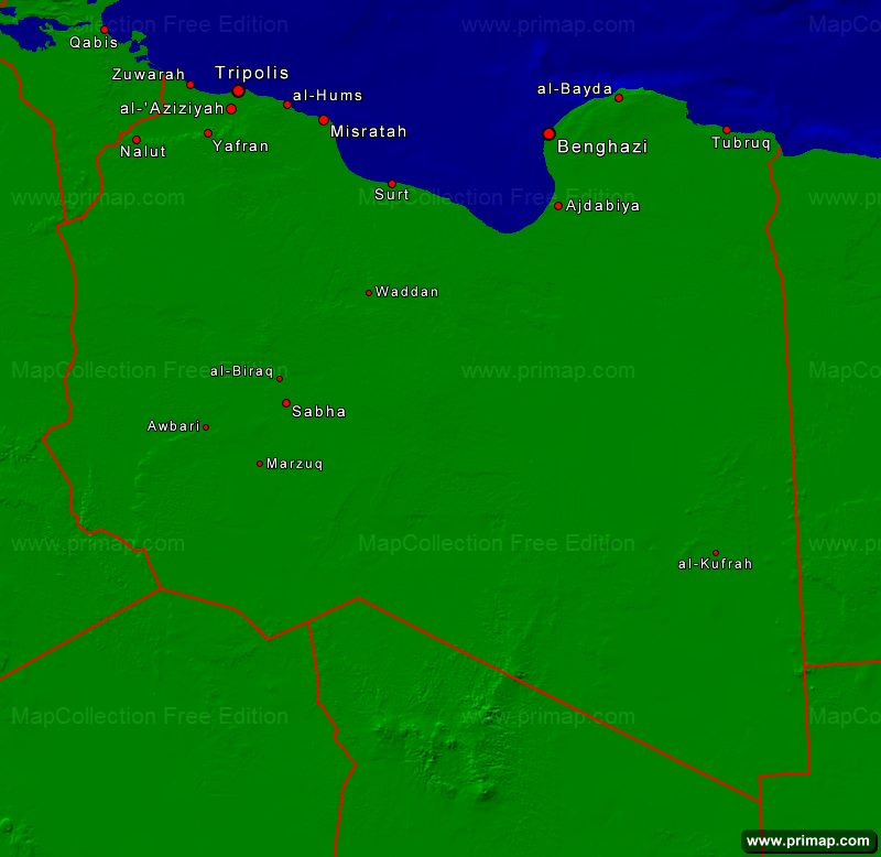 Länderkarten - Libyen - Städte + Grenzen - 800x778 kleine Schrift
