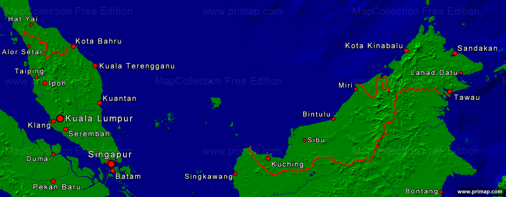 Länderkarten - Malaysia - Städte + Grenzen - 1000x389 kleine Schrift