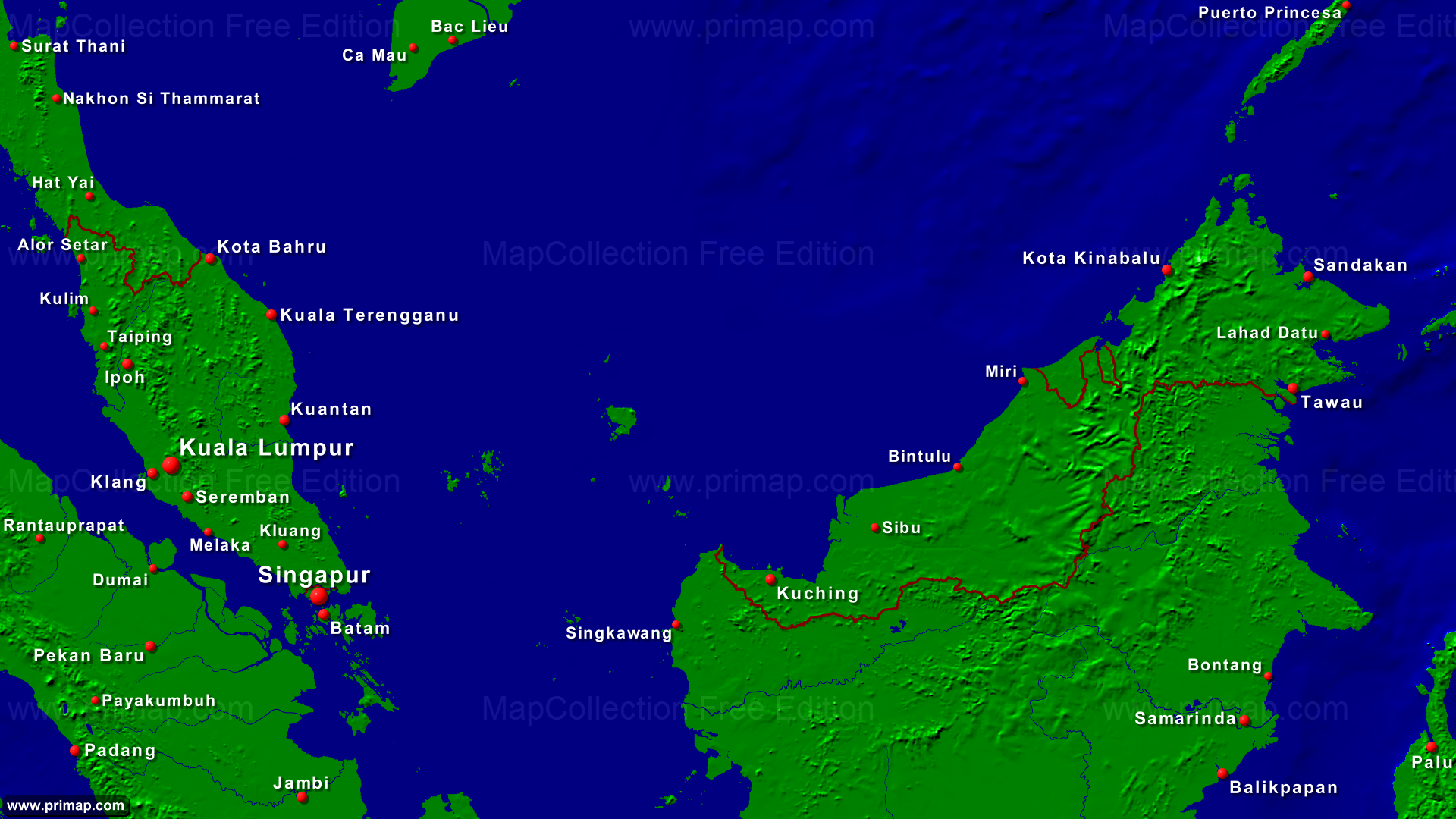 Länderkarten - Malaysia - Städte + Grenzen - 1920x1080 (16:9) große Schrift