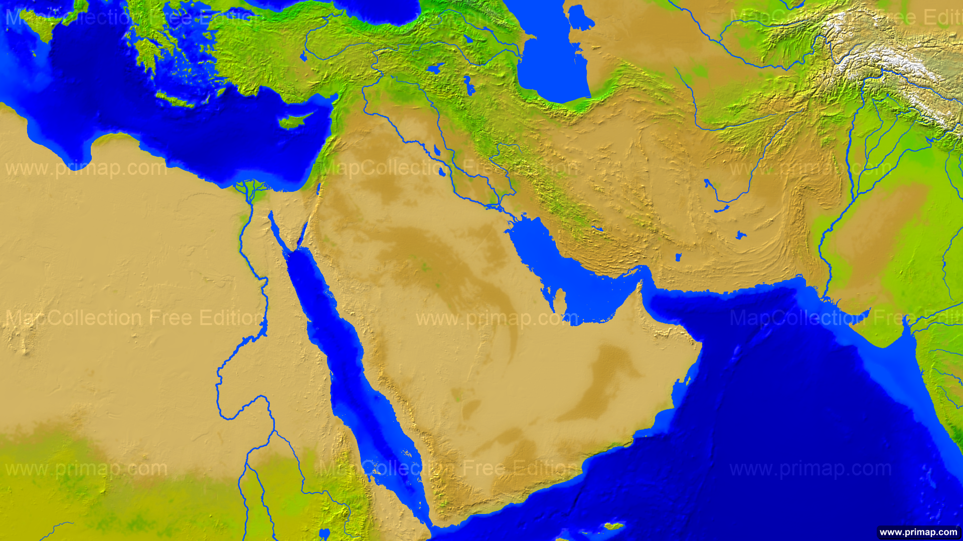 Länderkarten - Naher Osten - Vegetation - 1920x1080 (16:9)