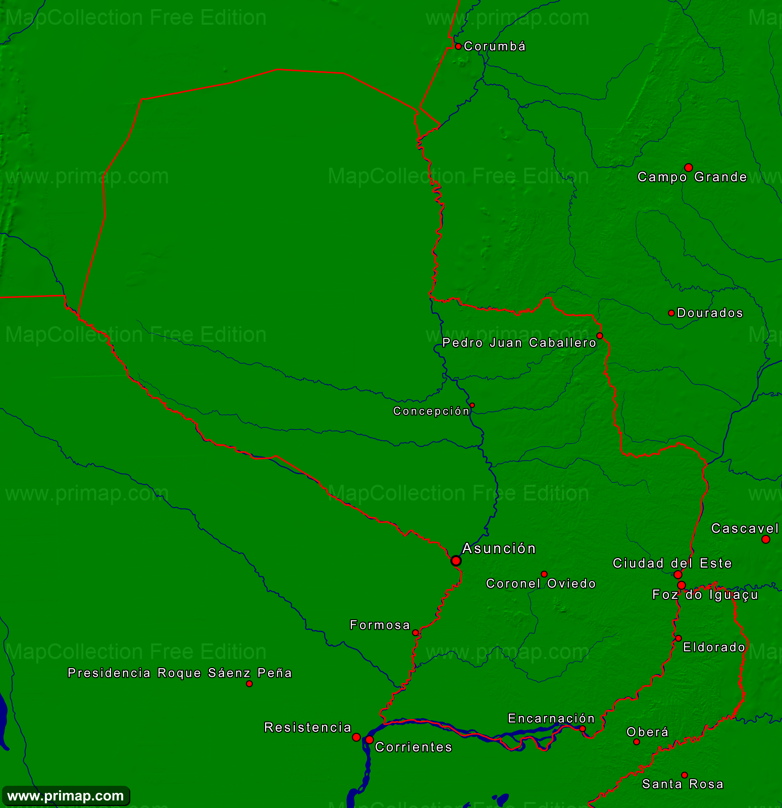 Länderkarten - Paraguay - Städte + Grenzen - 1549x1600 kleine Schrift