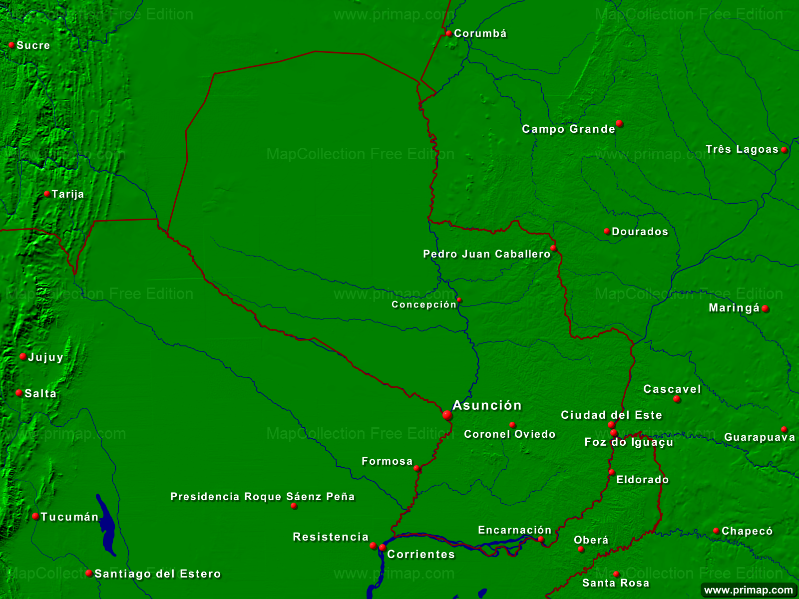 Länderkarten - Paraguay - Städte + Grenzen - 1600x1200 (4:3) große Schrift