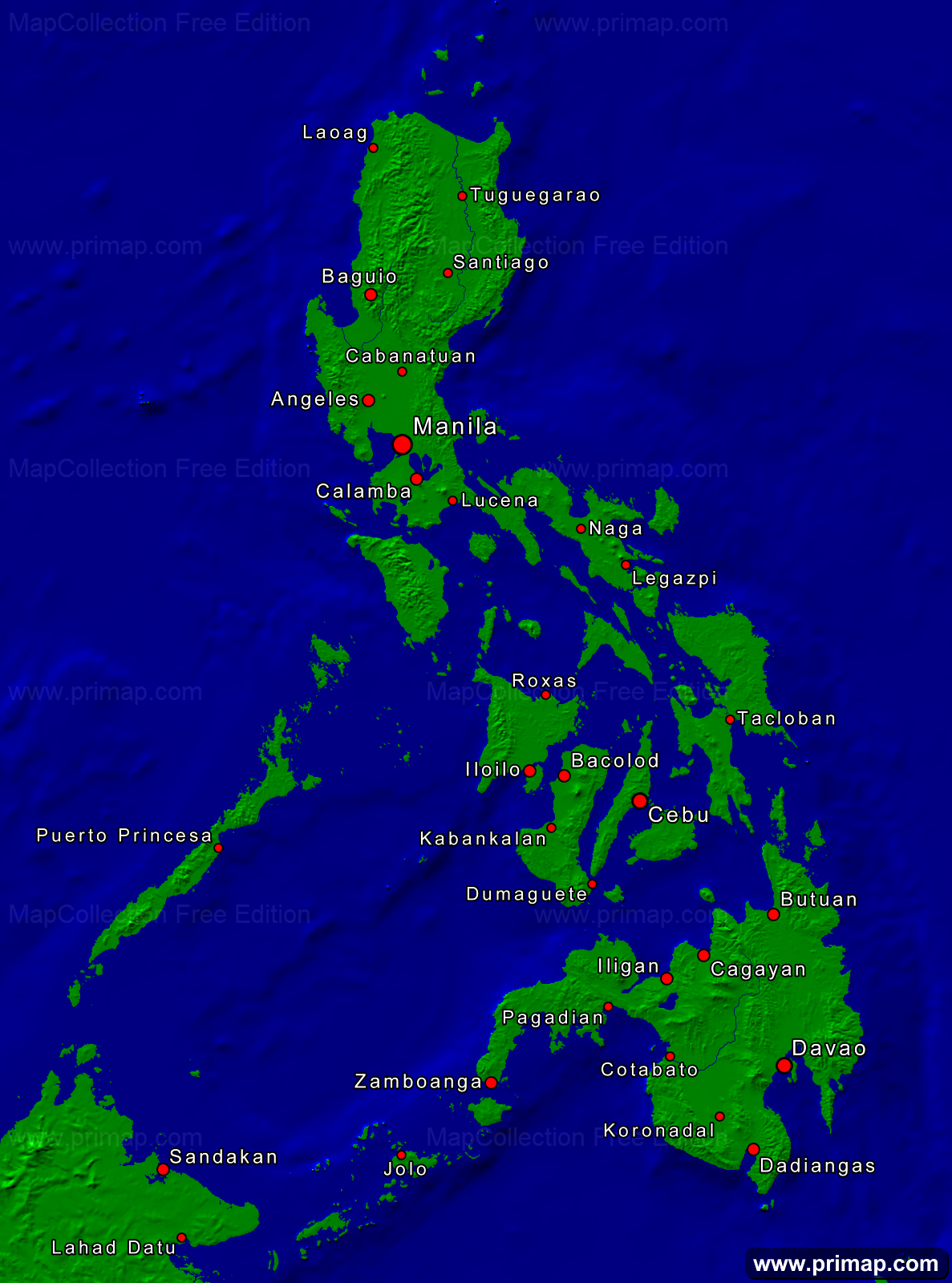Länderkarten - Philippinen - Städte + Grenzen - 1187x1600 kleine Schrift